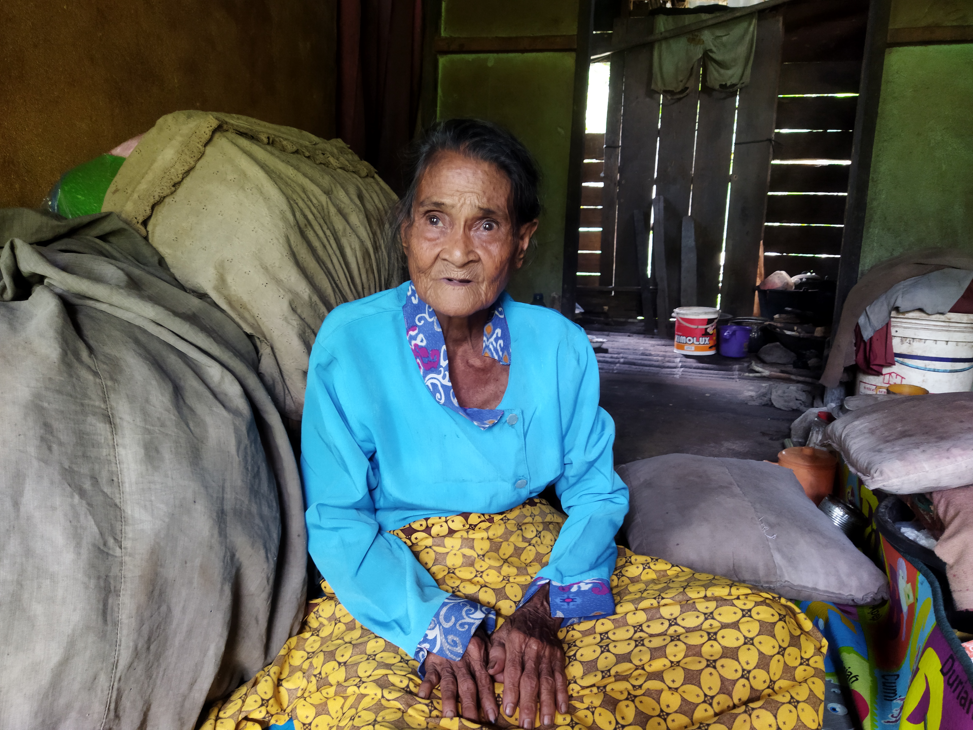 Tak jauh dari sana, Nek Sinah (80) tinggal di rumah mungil 3x3 meter yang kayunya mulai rapuh. Ia tak pernah menikah dan hidup sepenuhnya seorang diri.