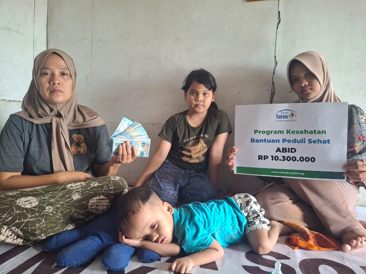 Alhamdulillah, Rumah Yatim Jabodetabek telah menyalurkan bantuan untuk Abid nih kak. Bantuan yang diberikan bantuan peduli sesama berupa uang tunai serta kebutuhan lainnya seperti susu, pampers untuk Abid.