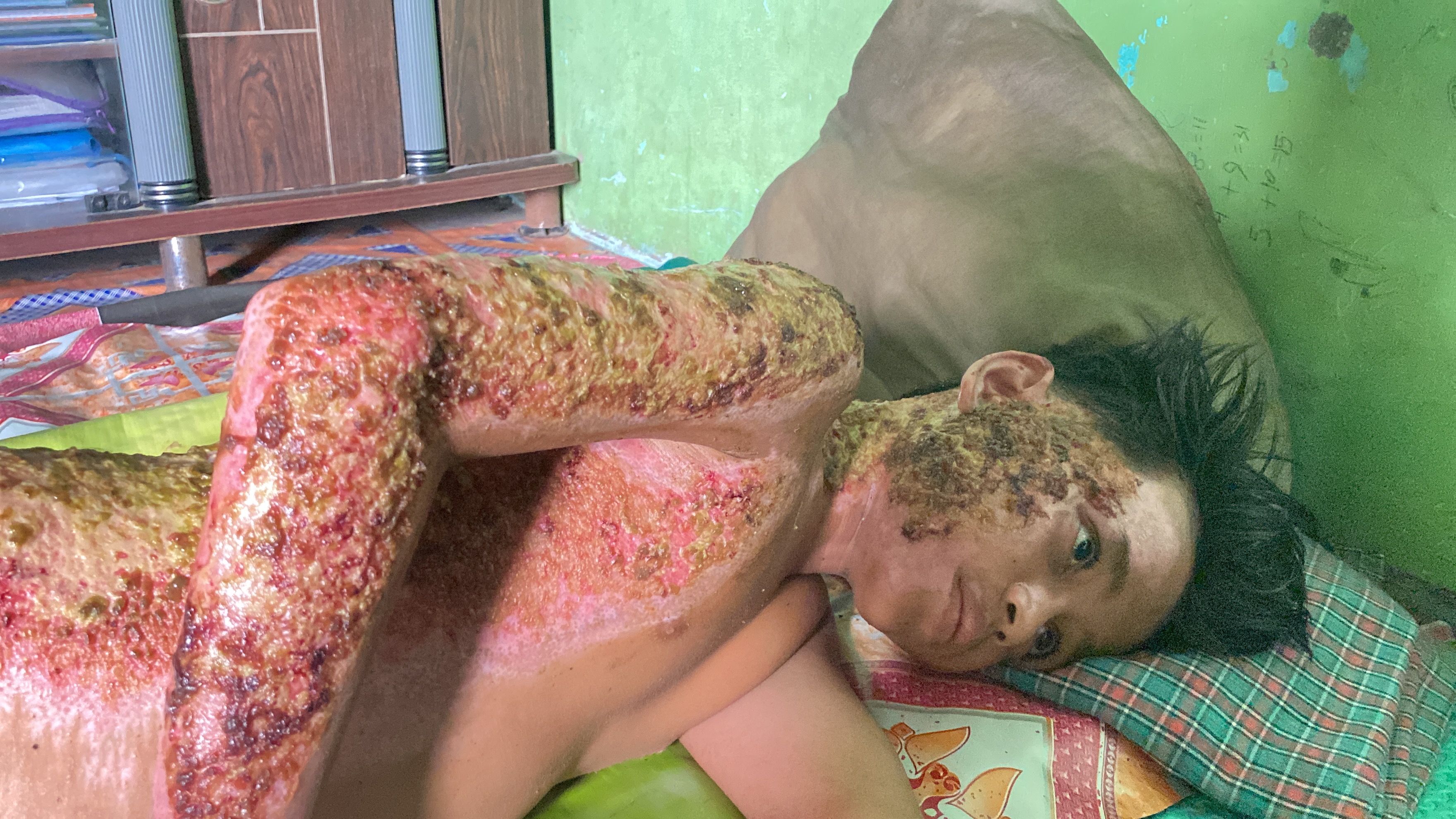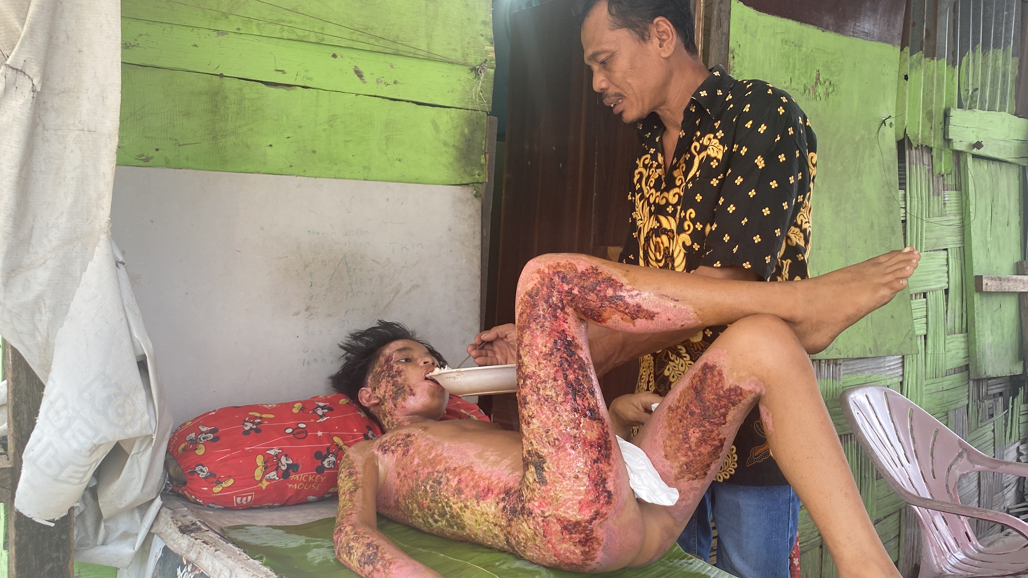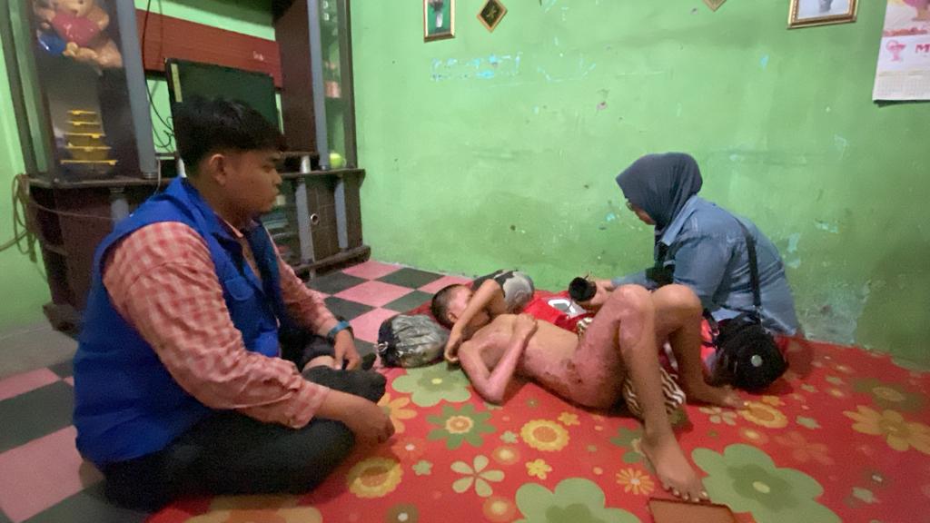 "Kalau malam agung gak bisa tidur bang, kulitnya terasa panas dan perih"