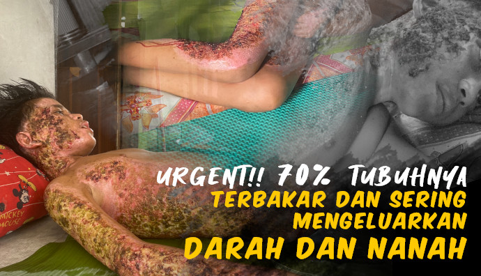 Ketika bermain, tib-tiba dari bawah tanah pipa BBM meledak dan membakar mengenai tubuh Agung. Kini sudah 1 bulan Agung terbaring di rumahnya.