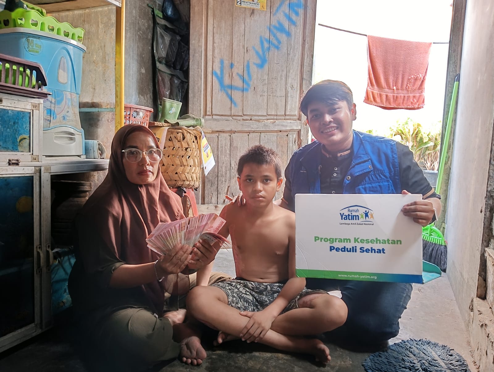 Alhamdulillah, Rumah Yatim telah menyalurkan bantuan untuk Agung nih kak. Bantuan yang diberikan adalah bantuan peduli sehat berupa uang tunai sebesar Rp 10.000.000,- yang akan digunakan untuk biaya berobat Agung kak.