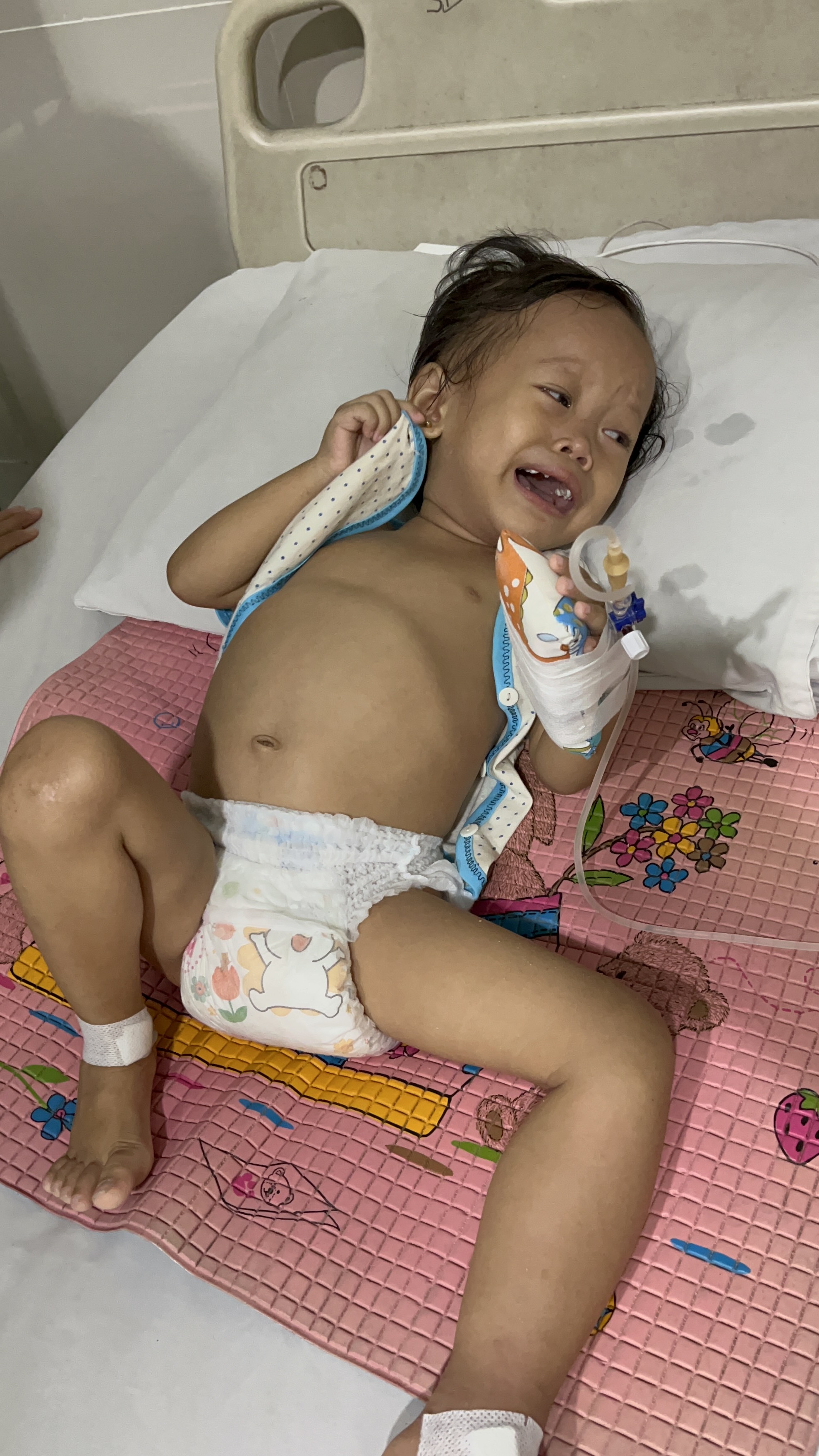 Arumi Khadijah (2 tahun), balita lucu dan ceria, kini hanya bisa terbaring lemah di ruang perawatan rumah sakit. Ia di diagnosa menderita tumor ganas di perut kiri (malignant neoplasm of abdomen) dan kanker darah kronis (Chronic Myeloid Leukemia / CML) dua penyakit yang sangat berat untuk anak seusianya.
