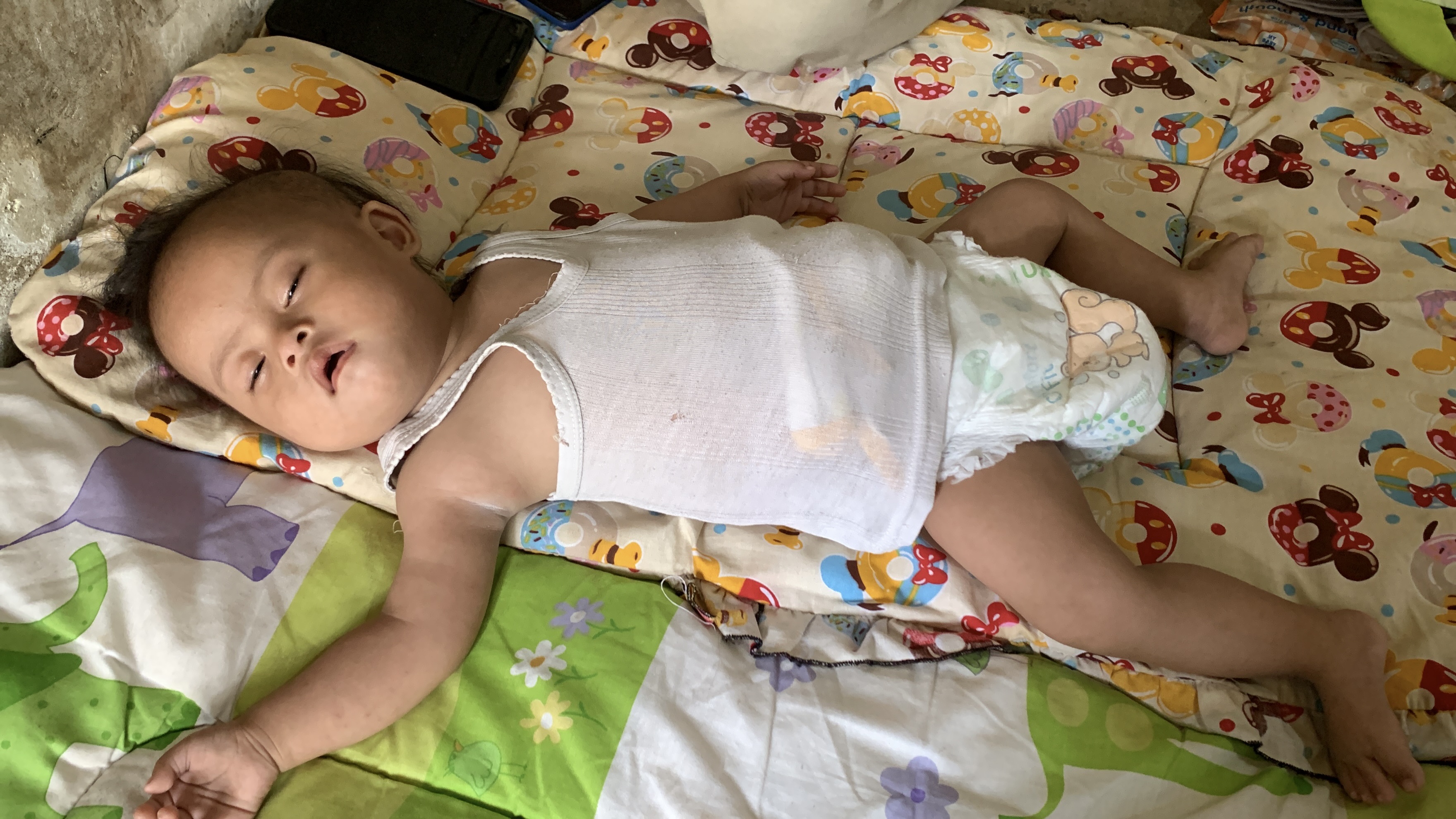 Bahkan saraf keseimbangannya terganggu, membuatnya belum mampu menegakkan leher seperti bayi seusianya.