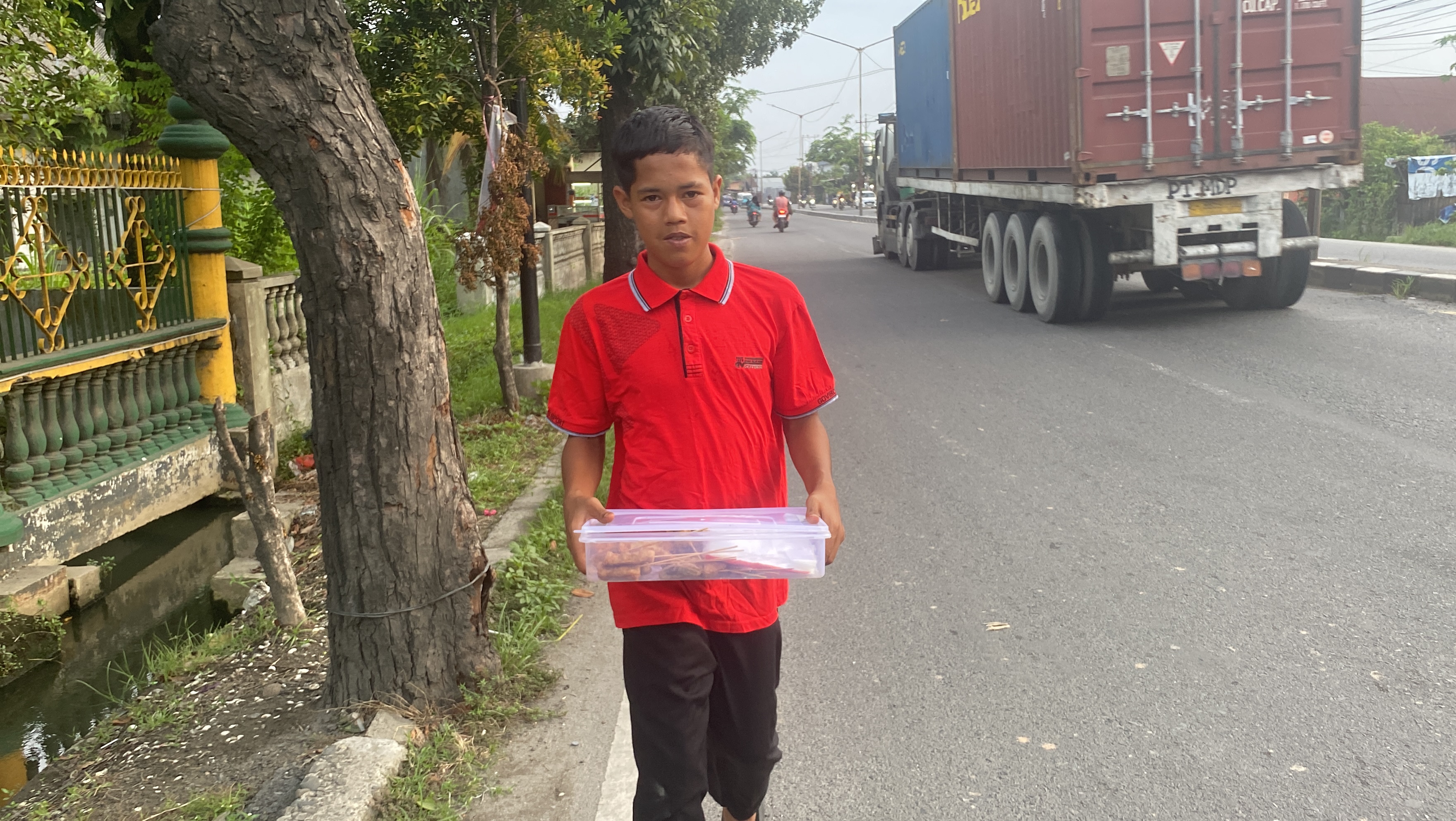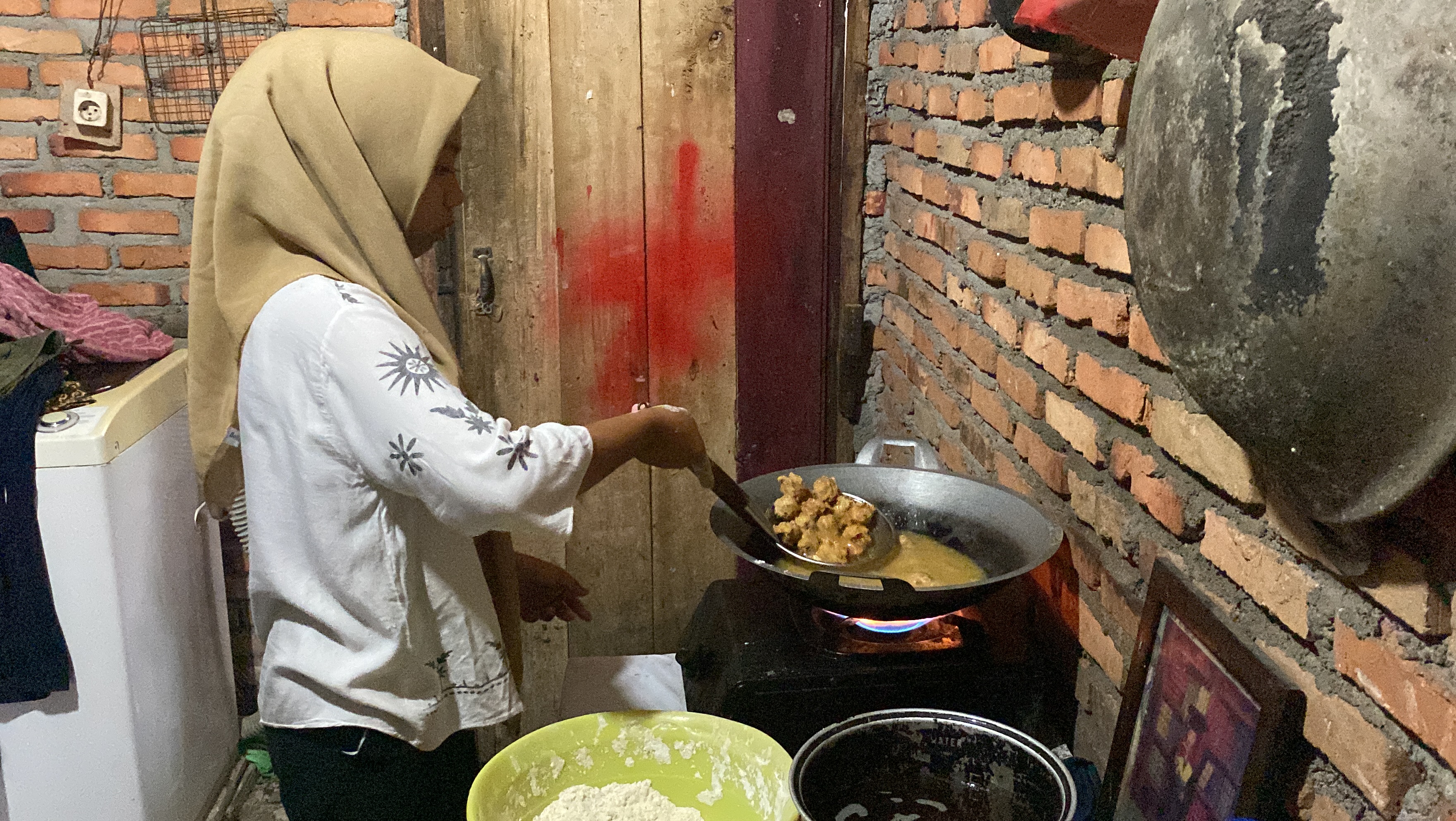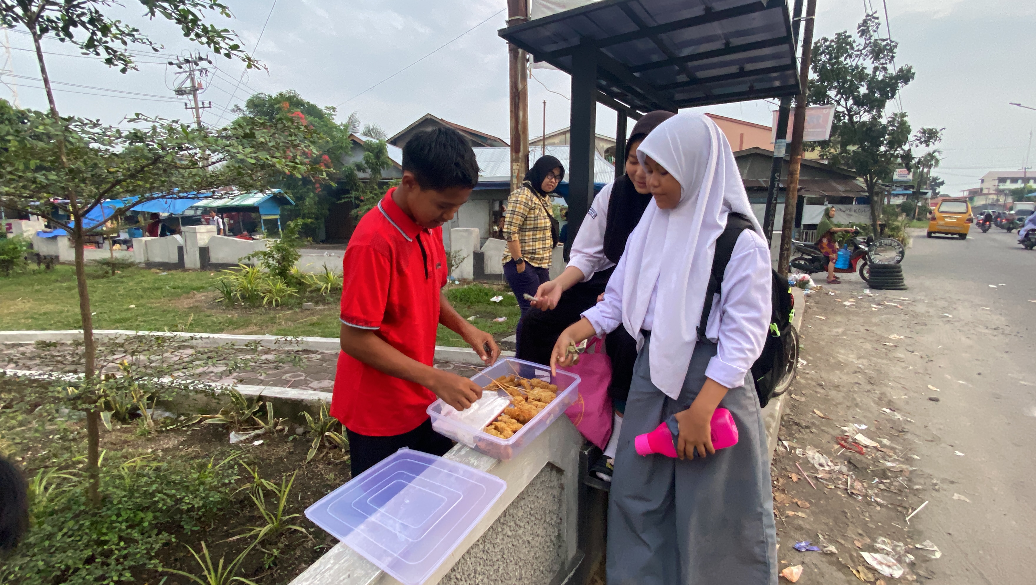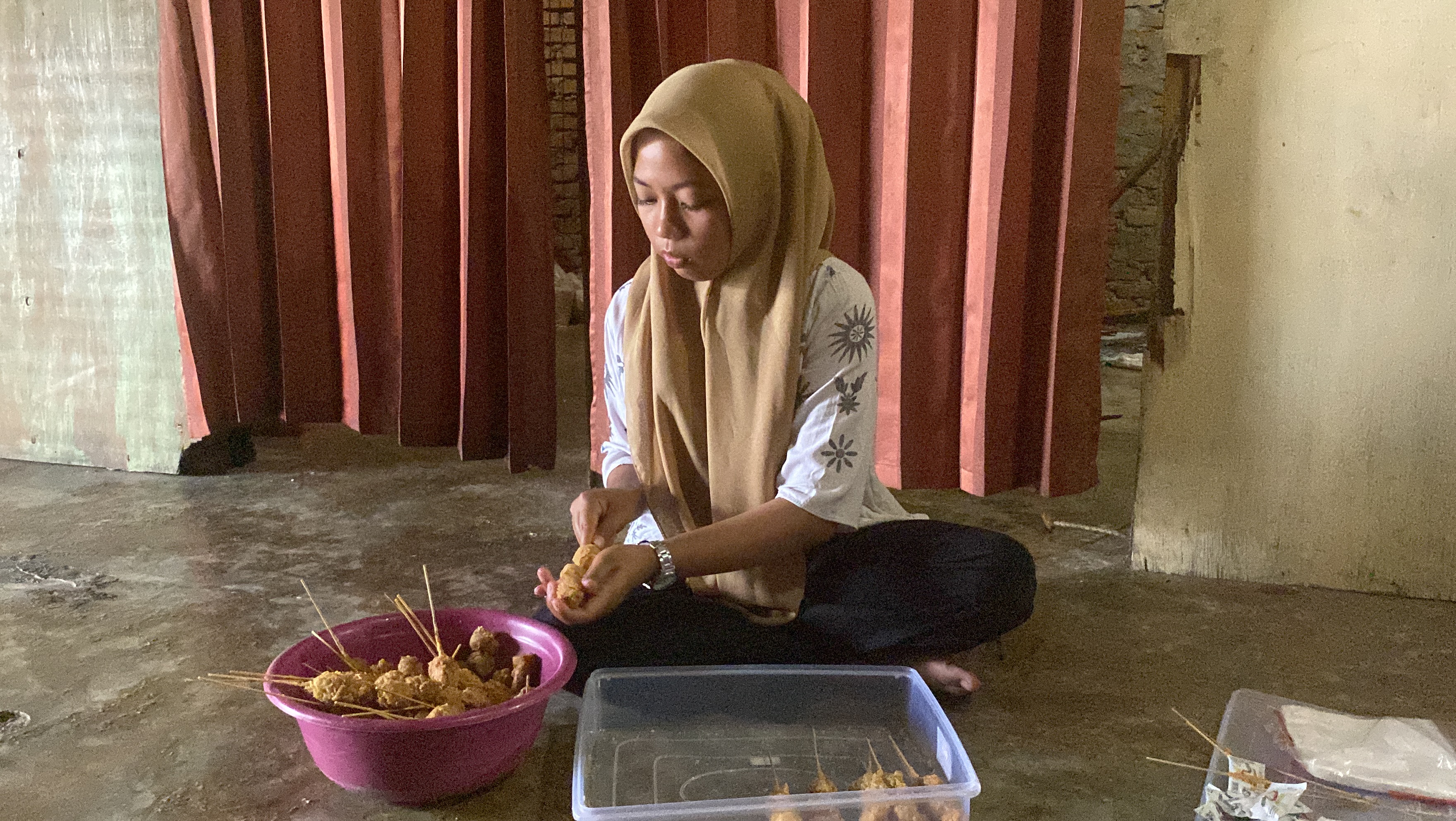 Setiap hari sebelum berangkat sekolah, Ayu membuat adonan bakso goreng untuk dijual. Kemudian, pulang sekolah nanti, Gilang menjual bakso goreng tersebut keliling.