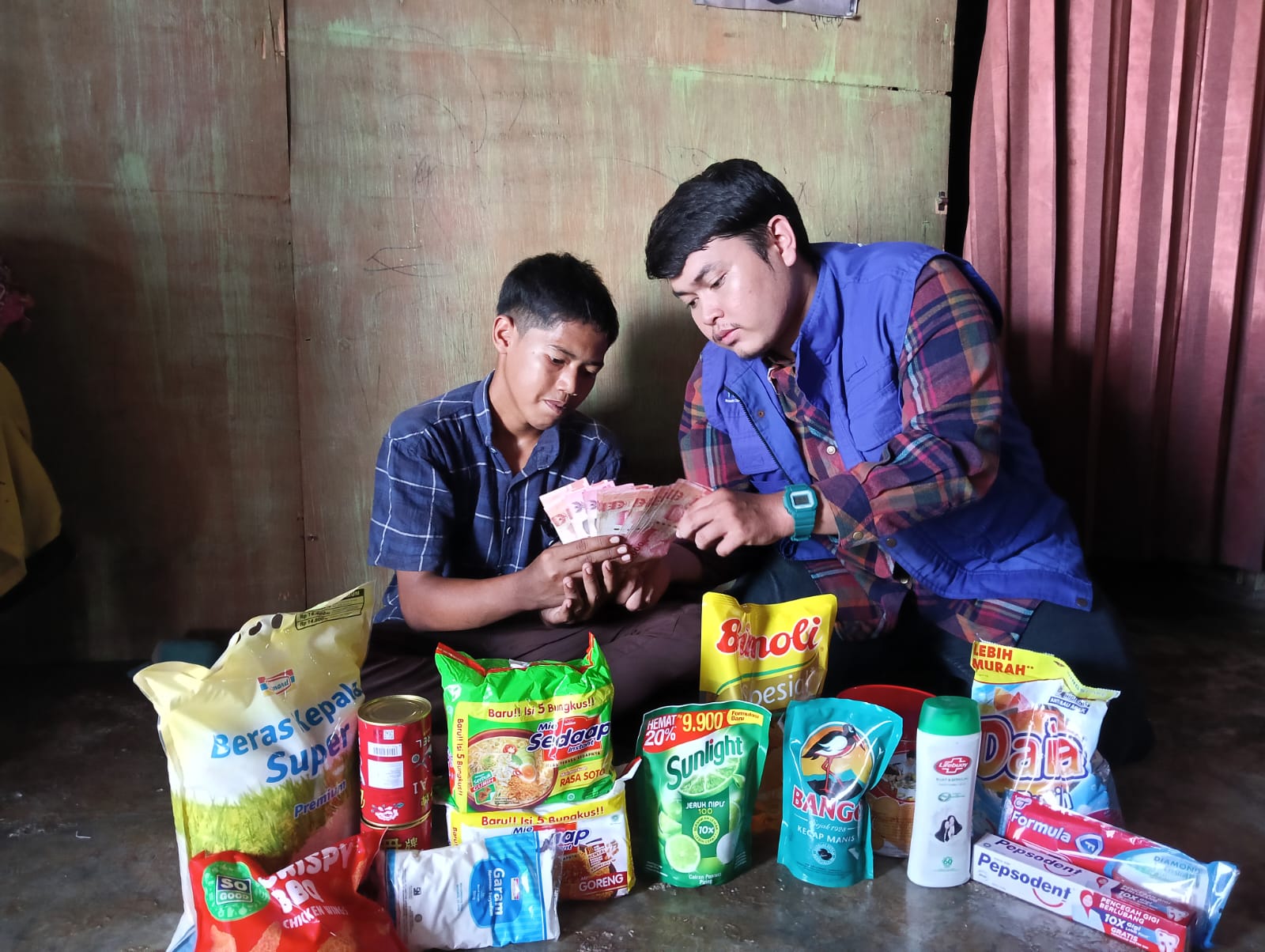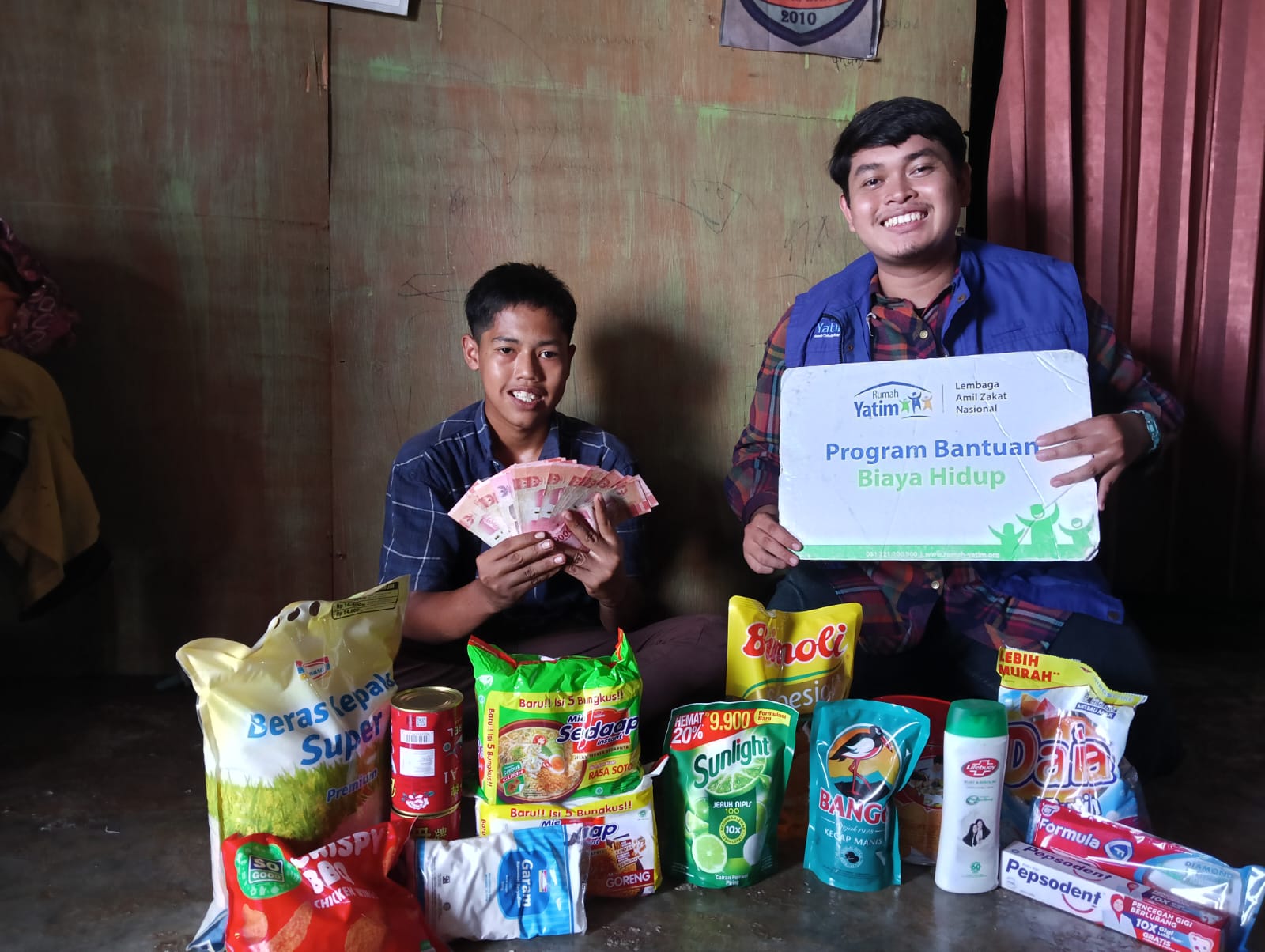 Bantuan yang diberikan adalah bantuan biaya hidup berupa minyak, beras, terigu, sarden, saus, kecap, susu, marjan, energen, snack, kopi, sabun, sampo, sikat gigi, sunlight dan lain lain nya, tak hanya itu, tim kami juga memberikan bantuan berupa uang tunai guna membantu kebutuhan sehari hari lainnya.