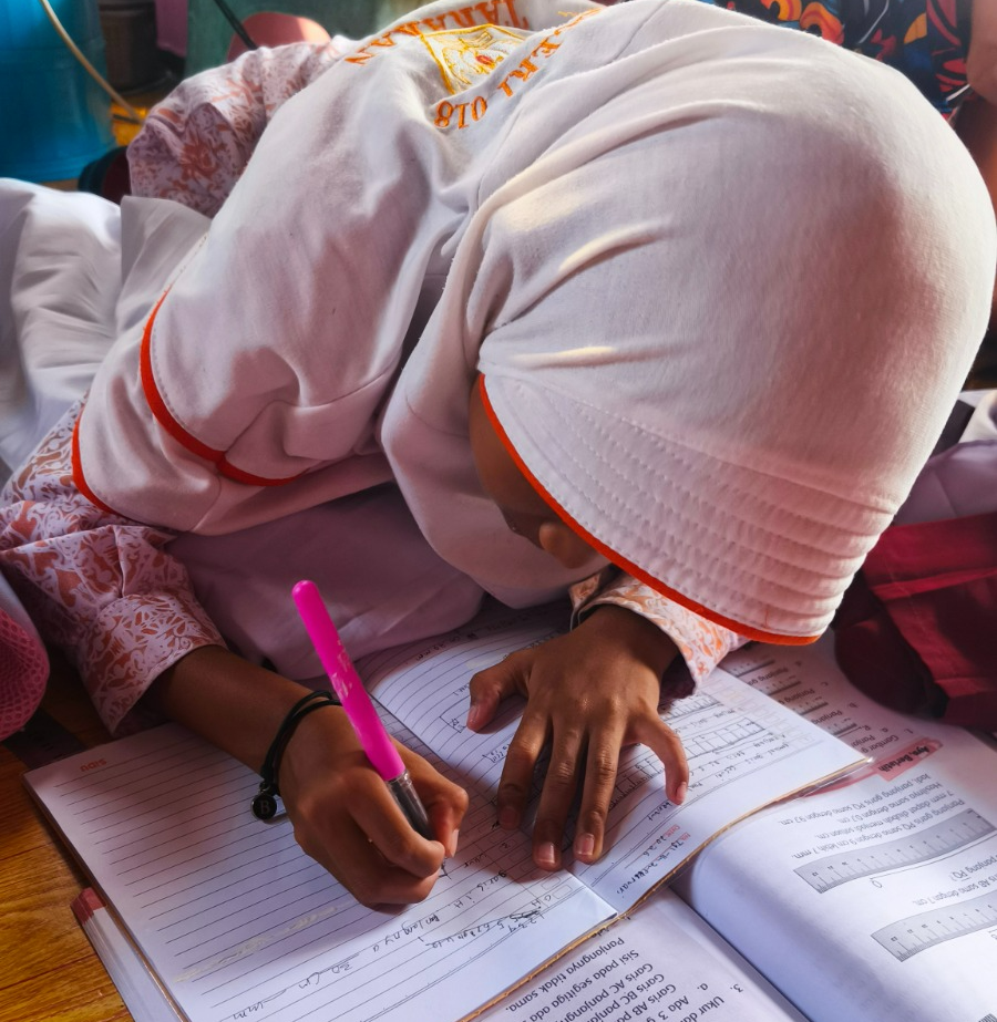 Ia berusaha menabung dan berdoa agar ada rezeki tiap harinya agar ia bisa membeli perlengkapan sekolah yang baru dan layak.