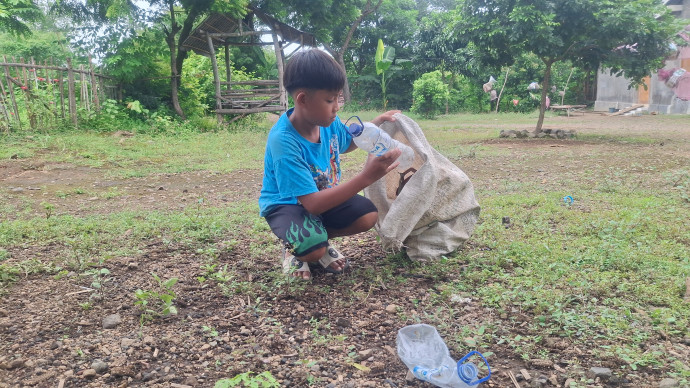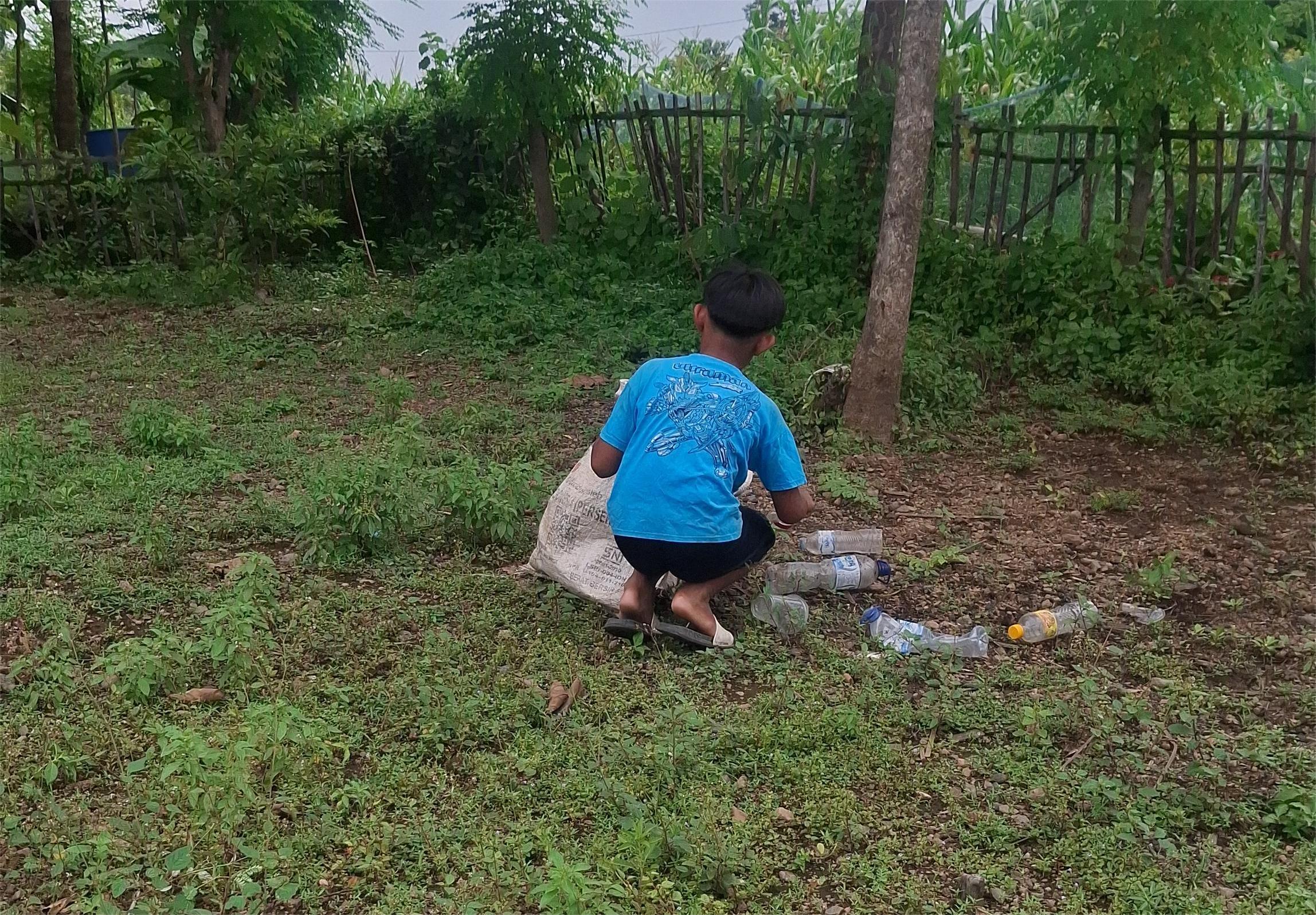 Dengan langkah kecil penuh semangat, Bakri mencari rongsokan seperti, botol, plastik bekas, kardus, kaleng dan barang barang yang sudah tidak terpakai lainnya. Terkadang hujan terkadang terkena terik matahari, tak membuat ia putus asa.