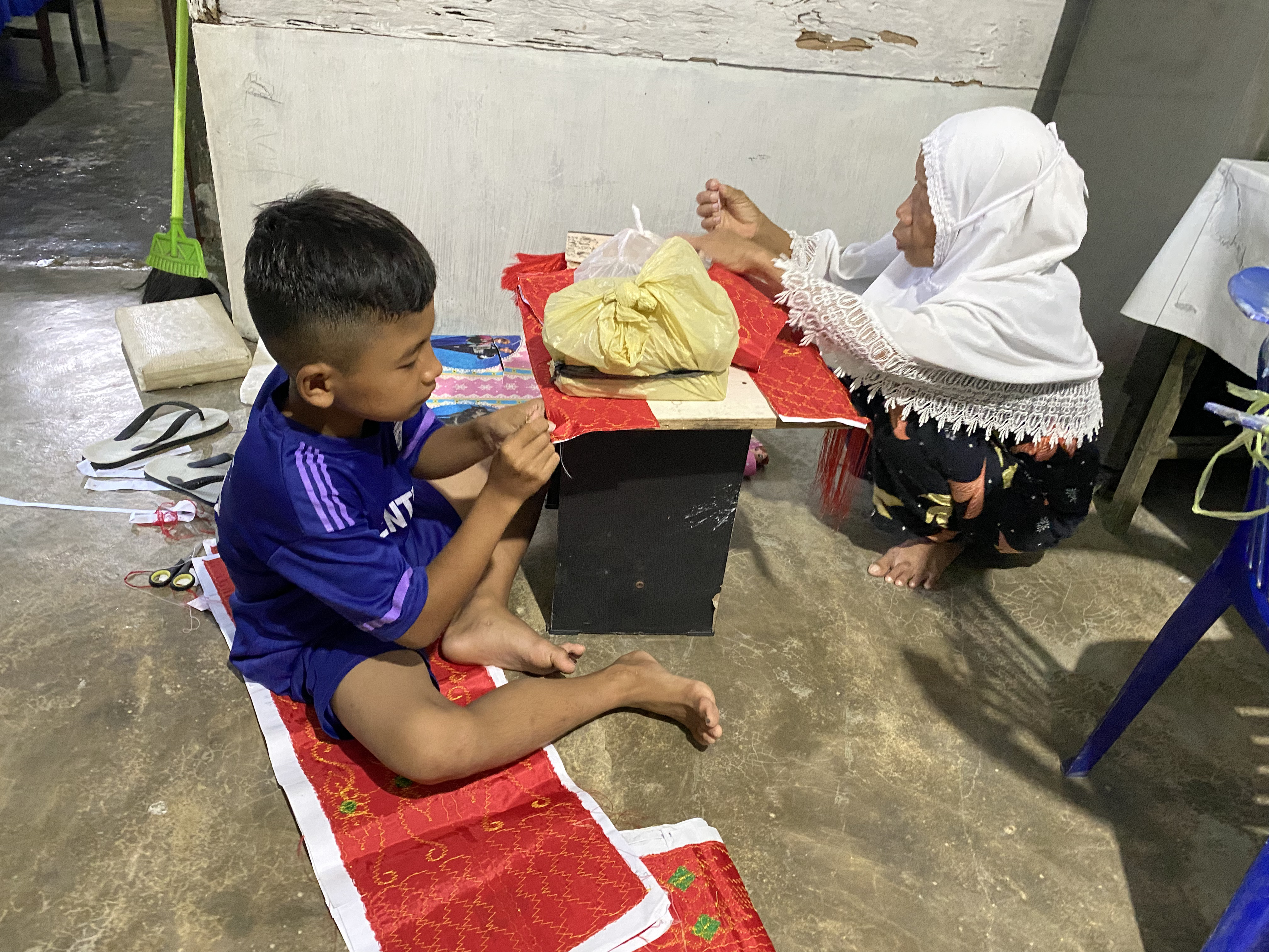 Biasanya Hamzah membantu sang nenek membuat kain ulos ketika pulang sekolah. Upah yang didapat pun hanya berkisar 10 ribu saja, karena neneknya hanya mampu membuat 5 buah per harinya.