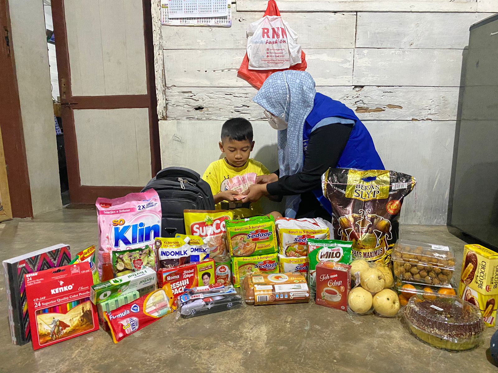 Bantuan yang diberikan adalah bantuan biaya hidup berupa minyak, beras, terigu, sarden, saus, kecap, susu, sampo, sikat gigi, sunlight, tas, buku, kotak pensil, pulpen, penghapus, pensil warna dan lain lain nya, tak hanya itu, tim kami juga memberikan bantuan berupa uang tunai guna membantu kebutuhan sehari hari lainnya.