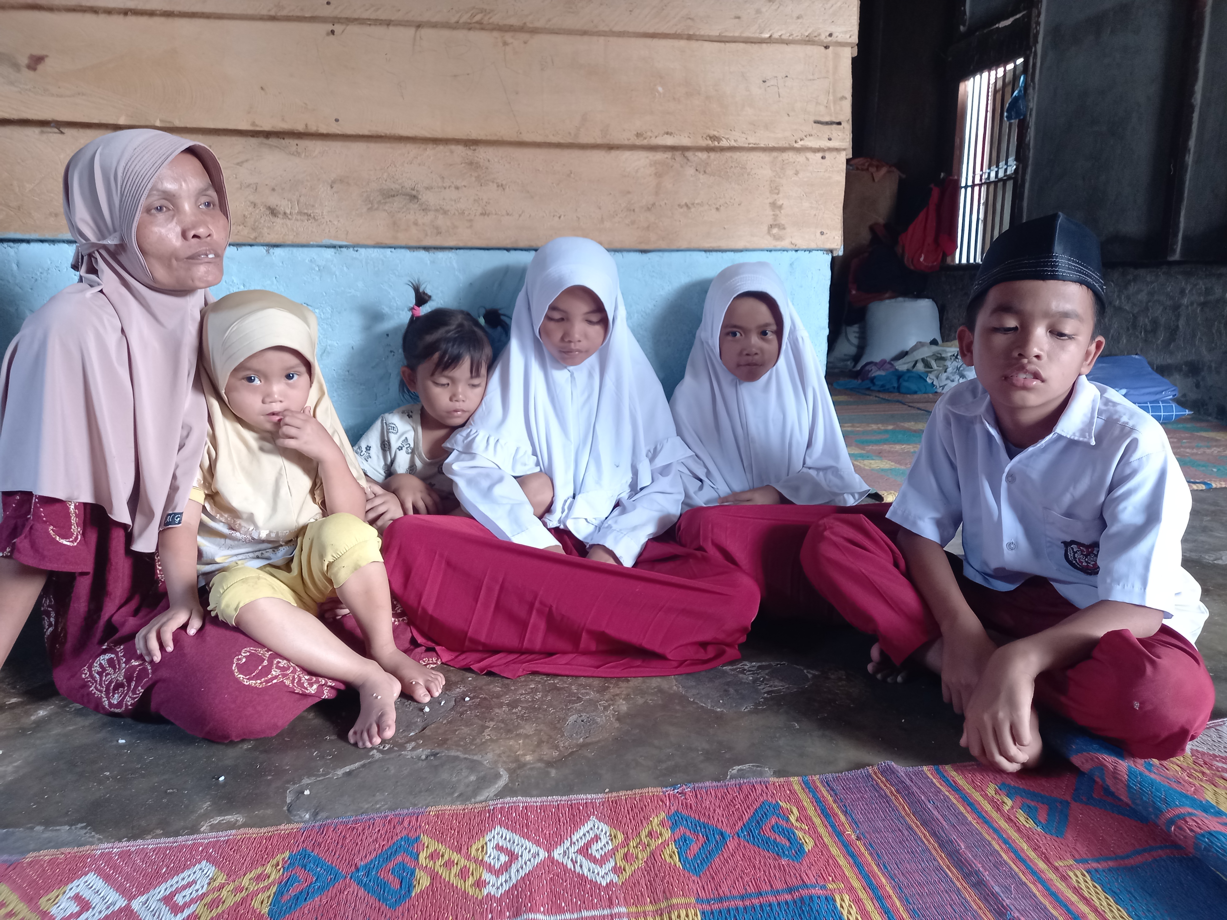 Tak hanya bekerja ibu Sarinah pun harus merawat anak-anaknya yang masih kecil-kecil yaitu Rahmi (12),Rahim(12),Rani(8),Indah(5) dan Kayla (4). Ibu Sarinah juga kebingungan cari biaya sekolah dan untuk membeli perlengkapan sekolah anaknya.” jangankan untuk sekolah, untuk makan pun kami susah”ujar Ibu Sarinah.