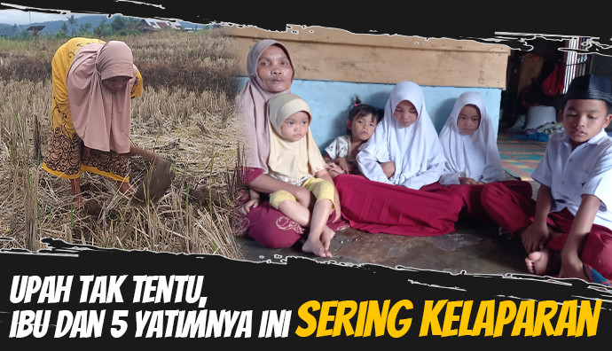 Ga mudah untuk Ibu Sarinah (44) berjuang mencari nafkah untuk ke 5 anak yatim nya sendirian. Semenjak 4 tahun yang lalu suaminya meninggal dunia, ia setiap hari harus mencari nafkah dengan bekerja menjadi buruh tani.