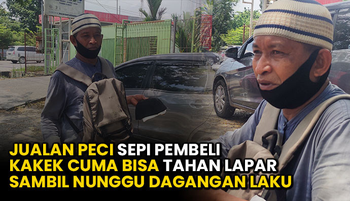 Ia terpaksa menurunkan harga dua peci dijual seharga 15 ribu, uang nya agar bisa membeli makan. Tak jarang ia hanya bisa minum air putih untuk menahan perutnya yang perih karena lapar, peci nya belum ada yang beli.
