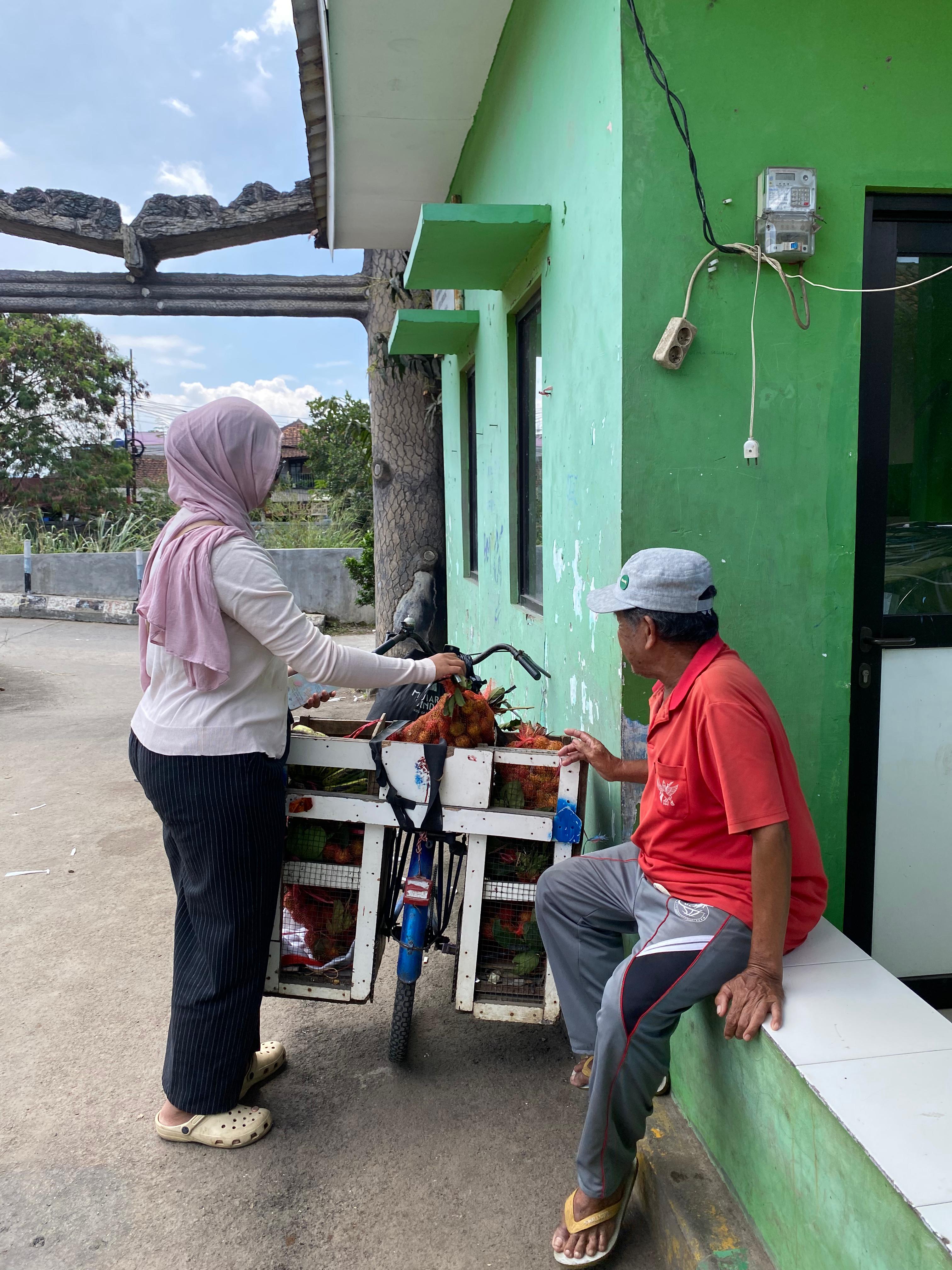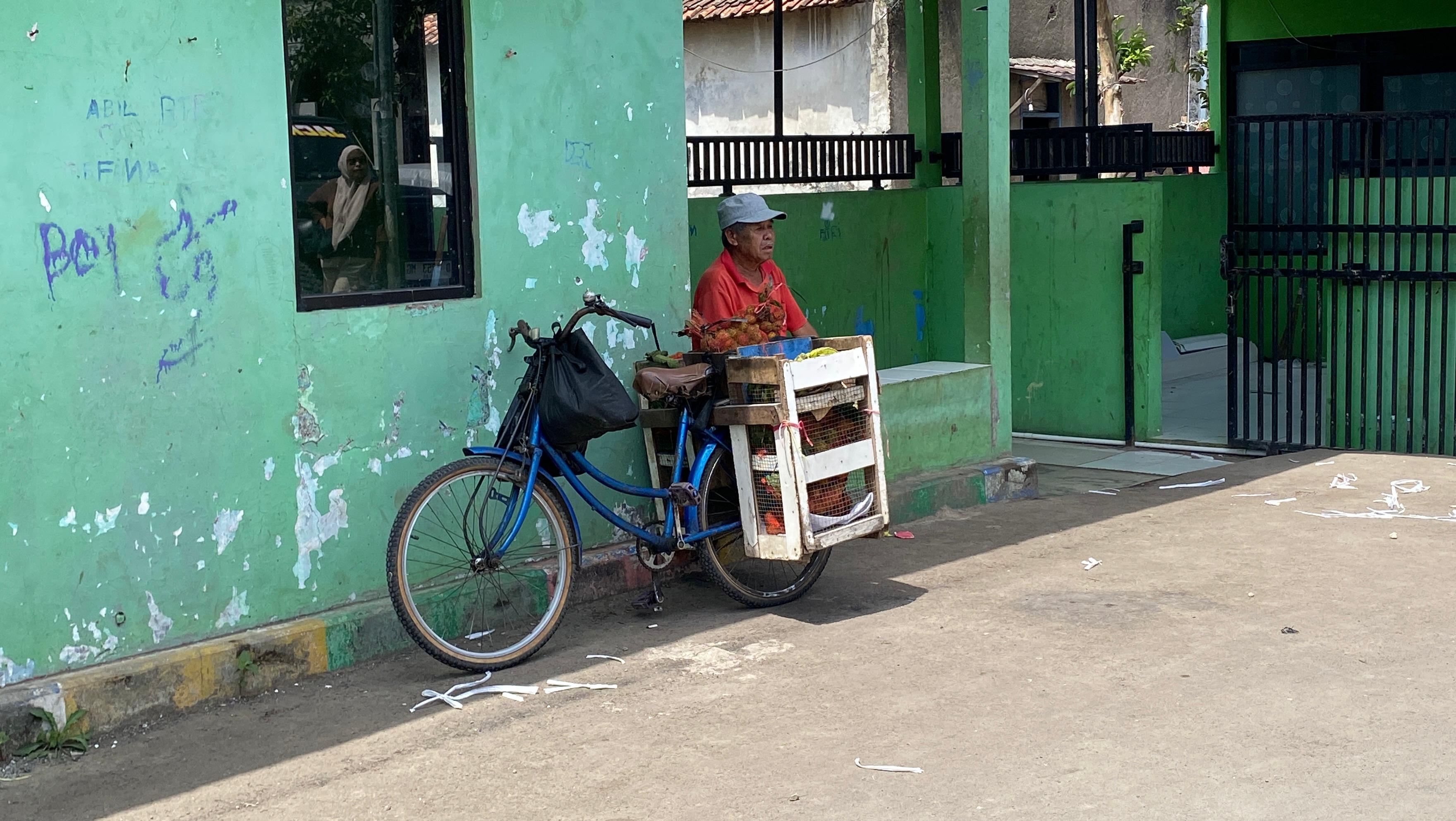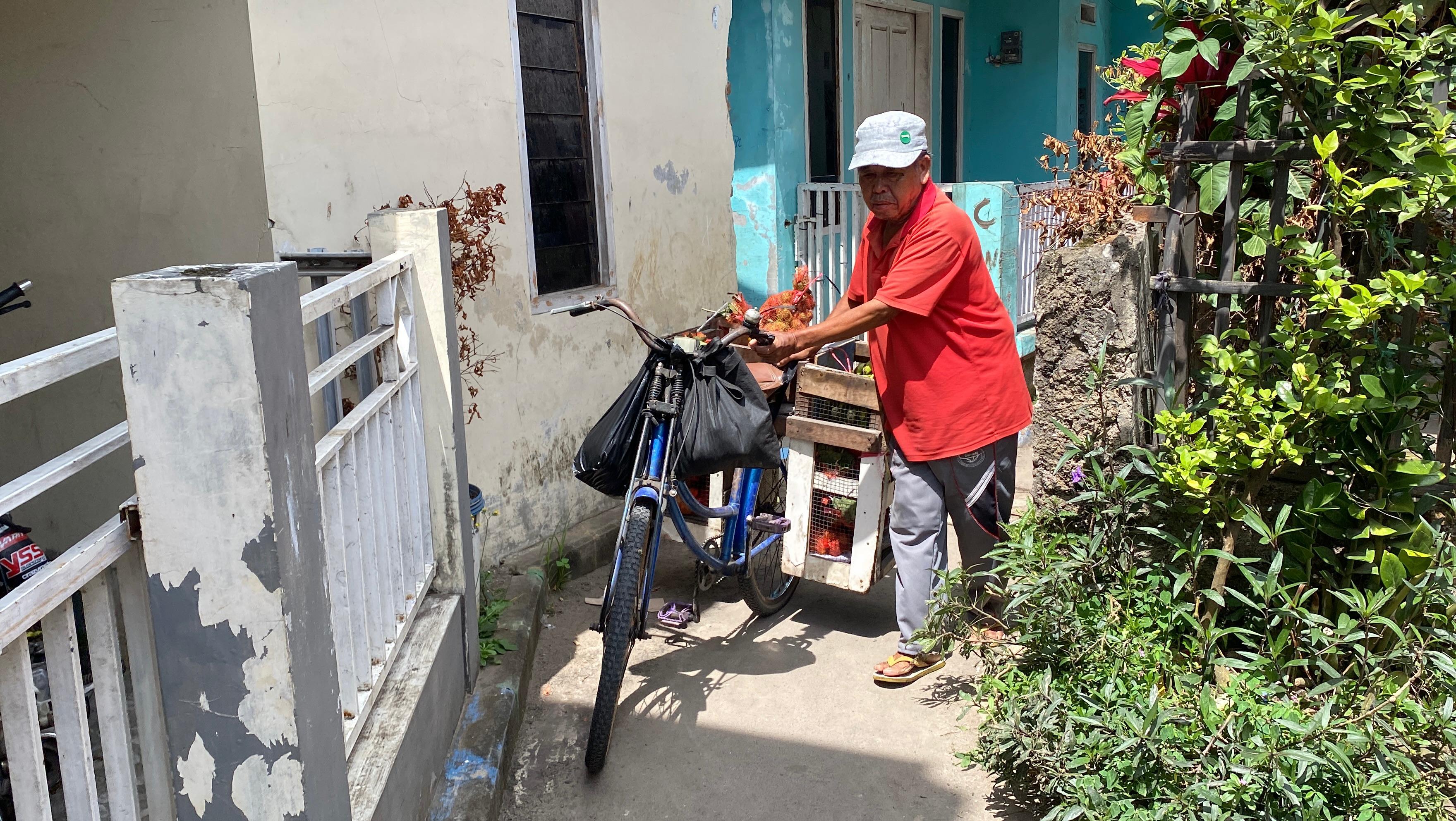 Meski tubuhnya lemah, Kakek Tarmin tetap berkeliling kampung menjual buah menggunakan sepeda tua. Tidak setiap hari ia bisa berjualan, karena terkadang rasa sakitnya datang tiba-tiba.