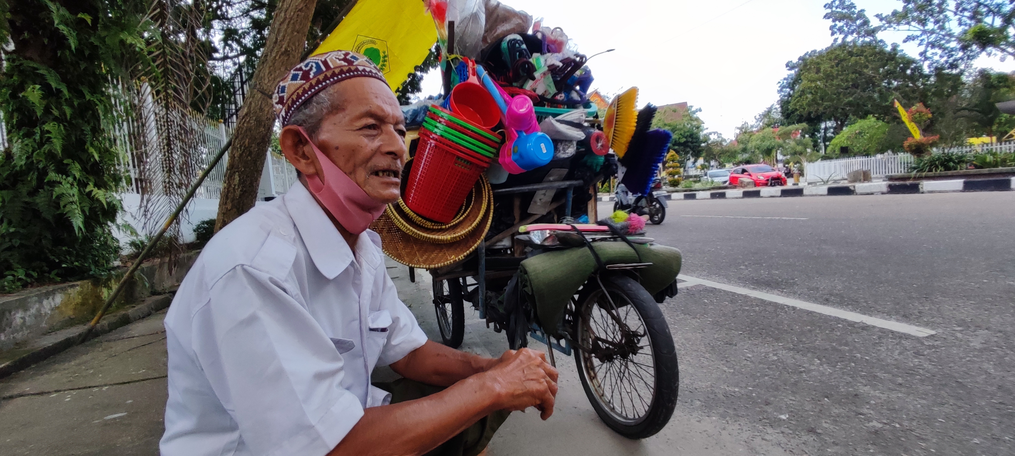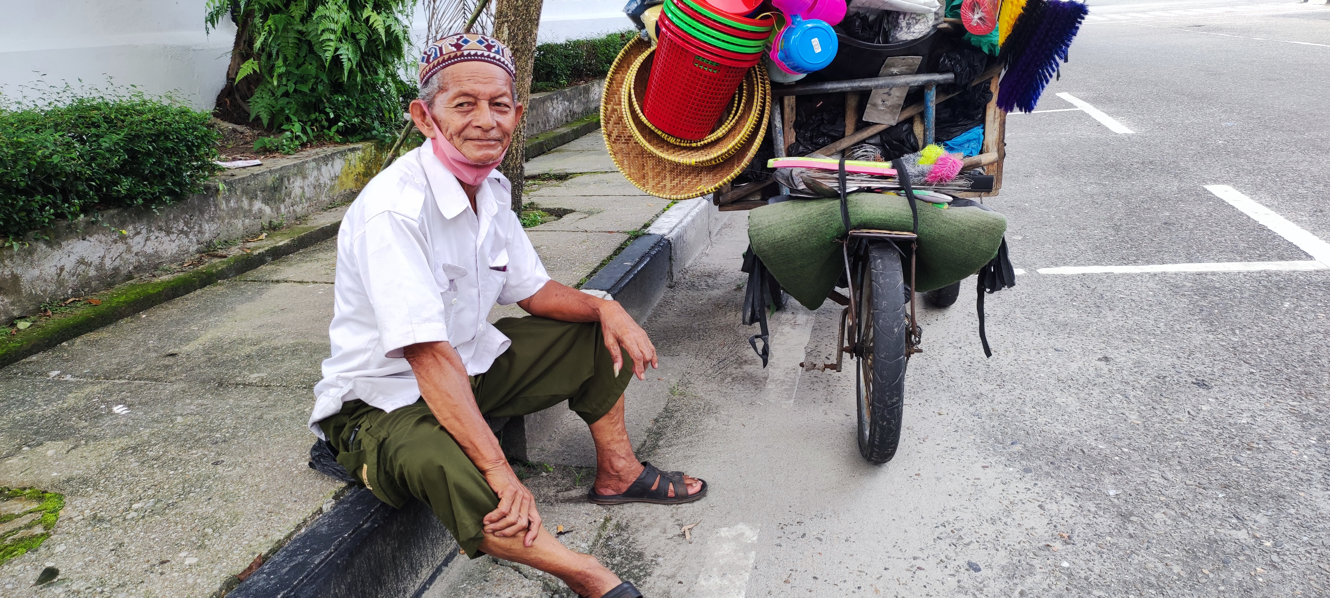 Kakeknya cerita katanya kakek punya penyakit lambung, jadi saat jualan terkadang perutnya terasa perih dan sakit, karena sering telat makan.