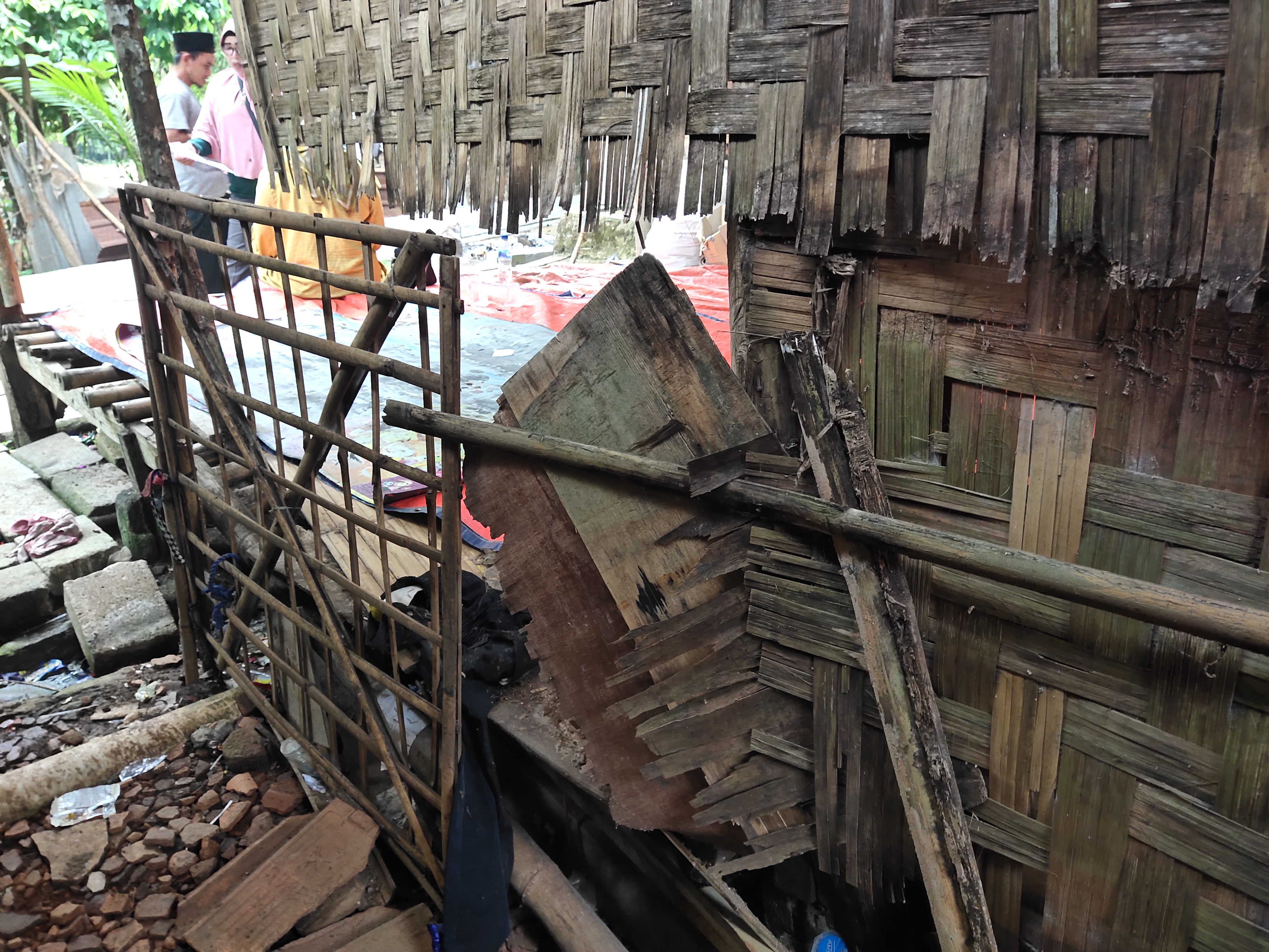 Namun bangunannya kini nyaris roboh–lantai kayu keropos,bilik dinding berlubang, dan atap bocor.
