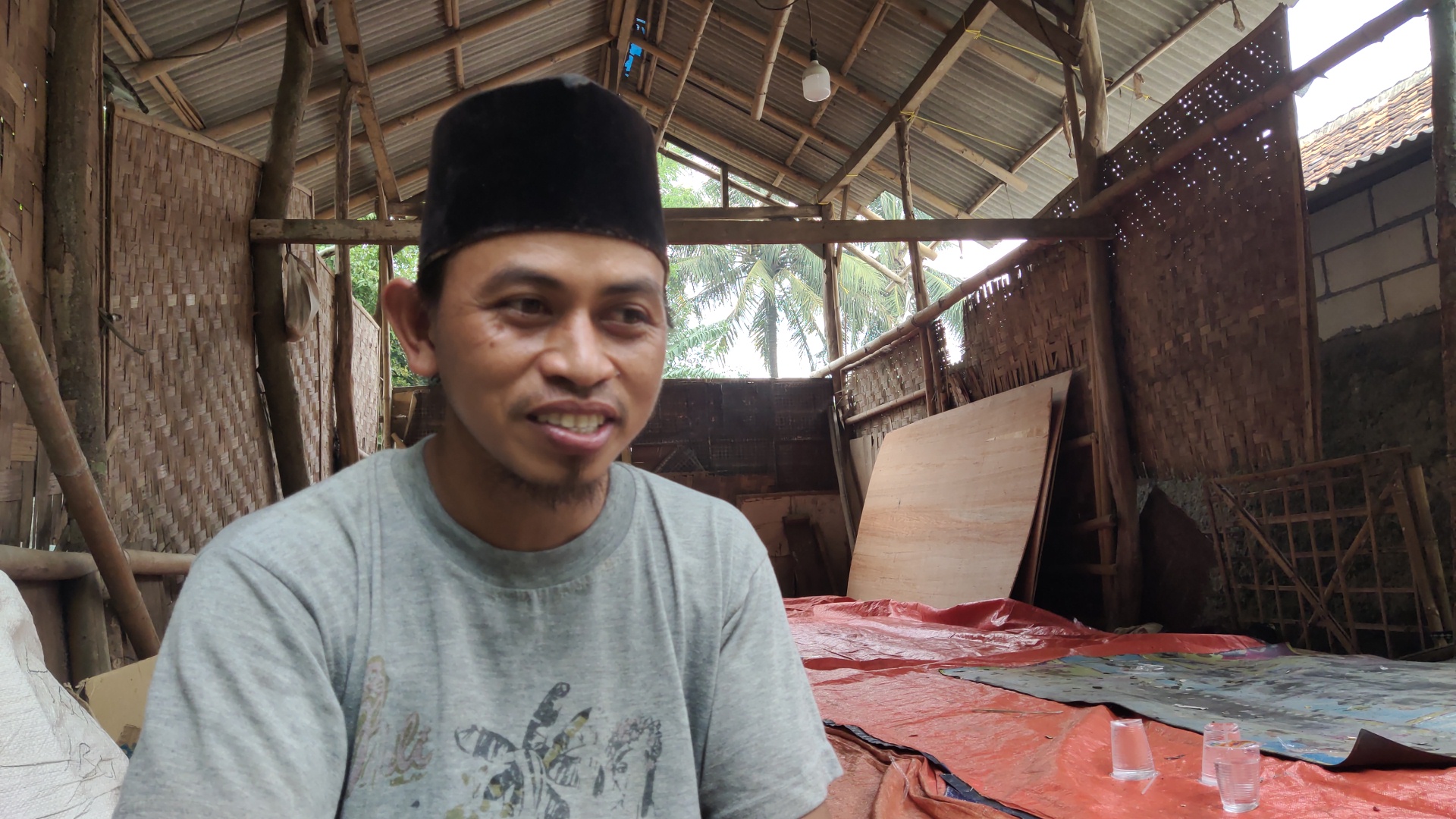 “Majelis sebenarnya cuma kepakai sepertiganya. Anak-anak geser ke sisi yang kayunya masih kuat, tapi tetap saja tidak muat,” tutur Ustadz Suhardi, pimpinan Majelis Ta’lim.