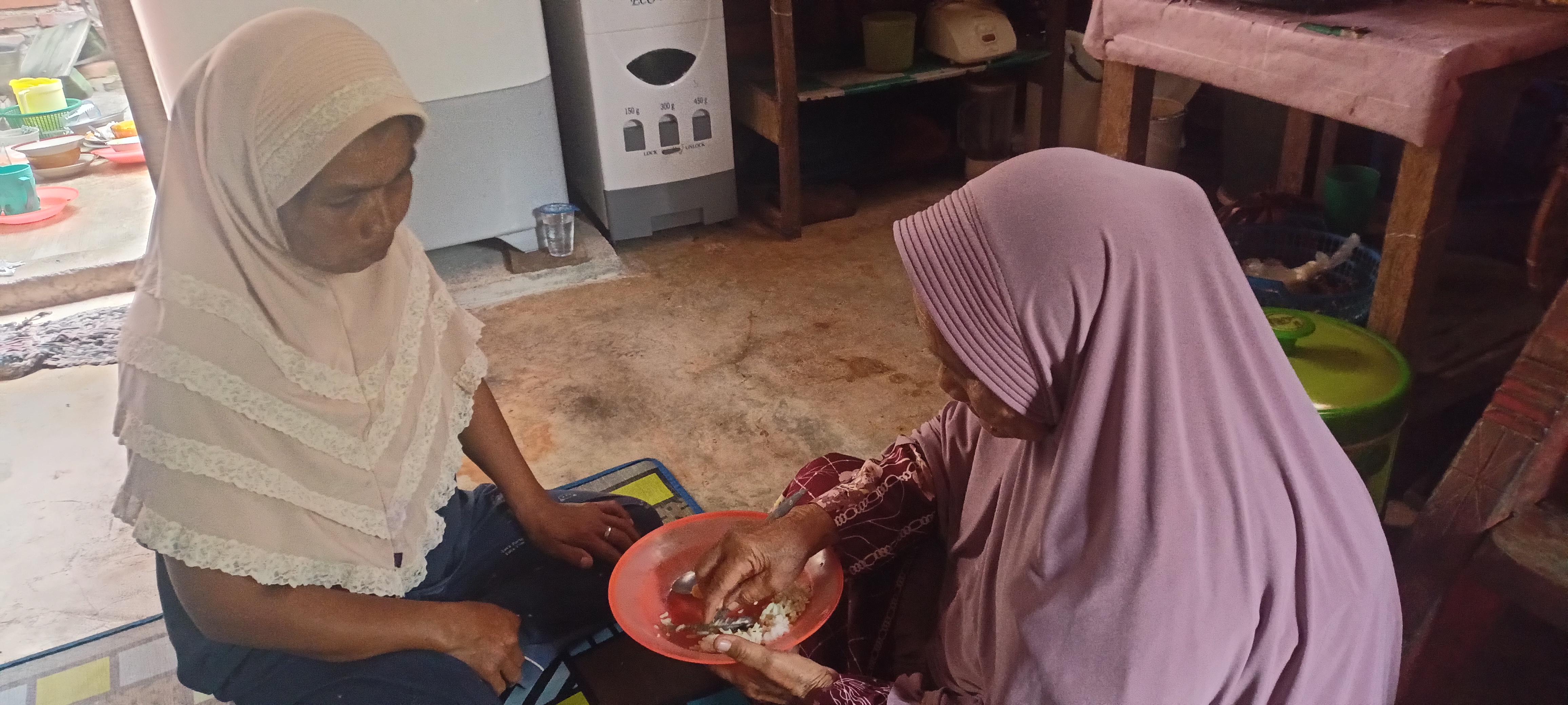 Setiap hari, sebelum berjualan nenek harus merawat suaminya dan anaknya yang mengalami gangguan kejiwaan.