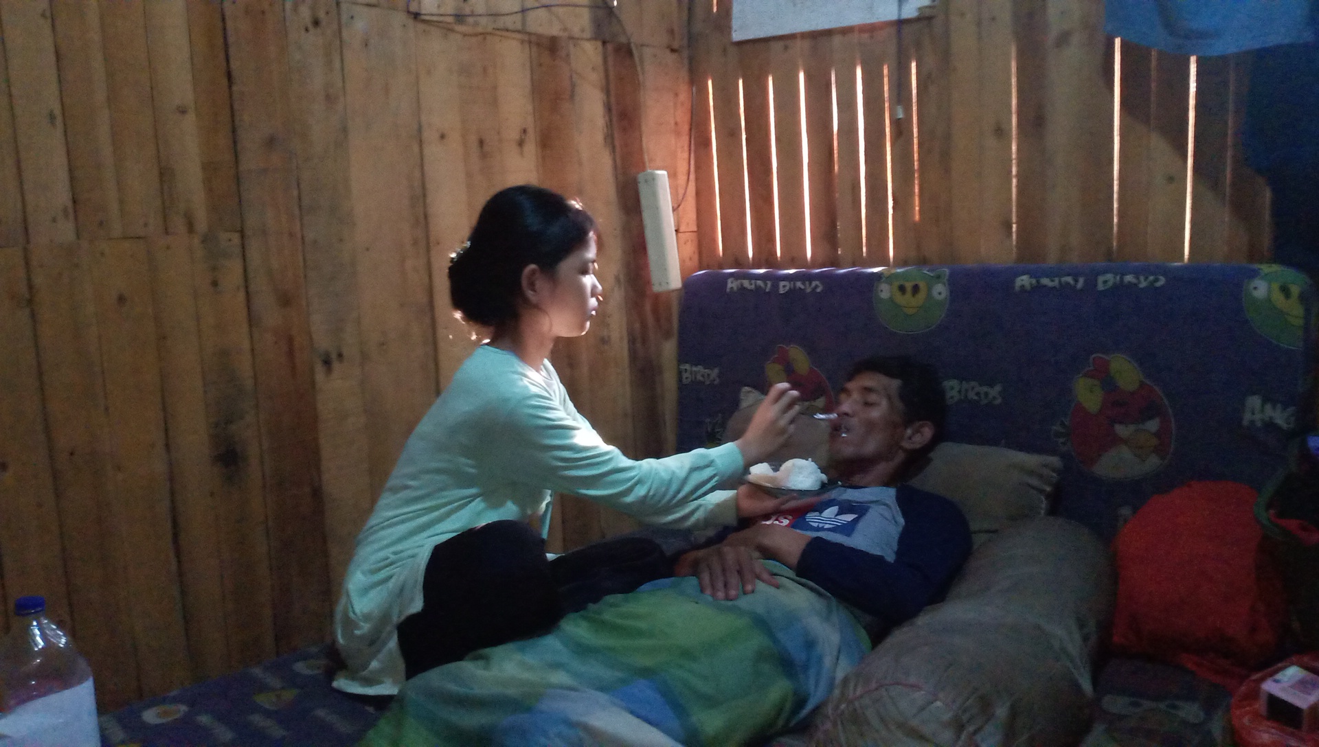Ayahnya hanya dirawat dirumah saja karena tak ada biaya dan tak punya BPJS.