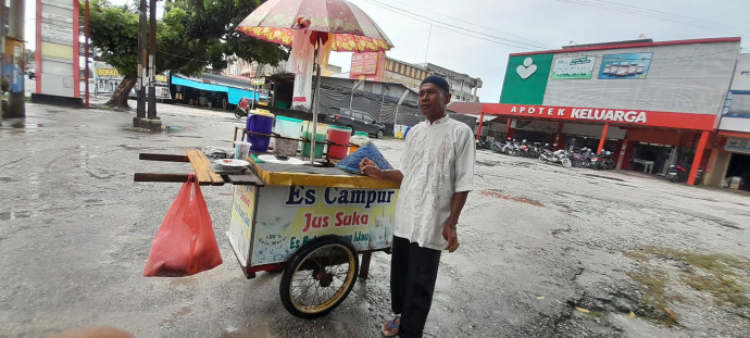 Nmanya Pak Afrizal (57) merupakan pedagang es cendol keliling demi melanjutkan hidup.