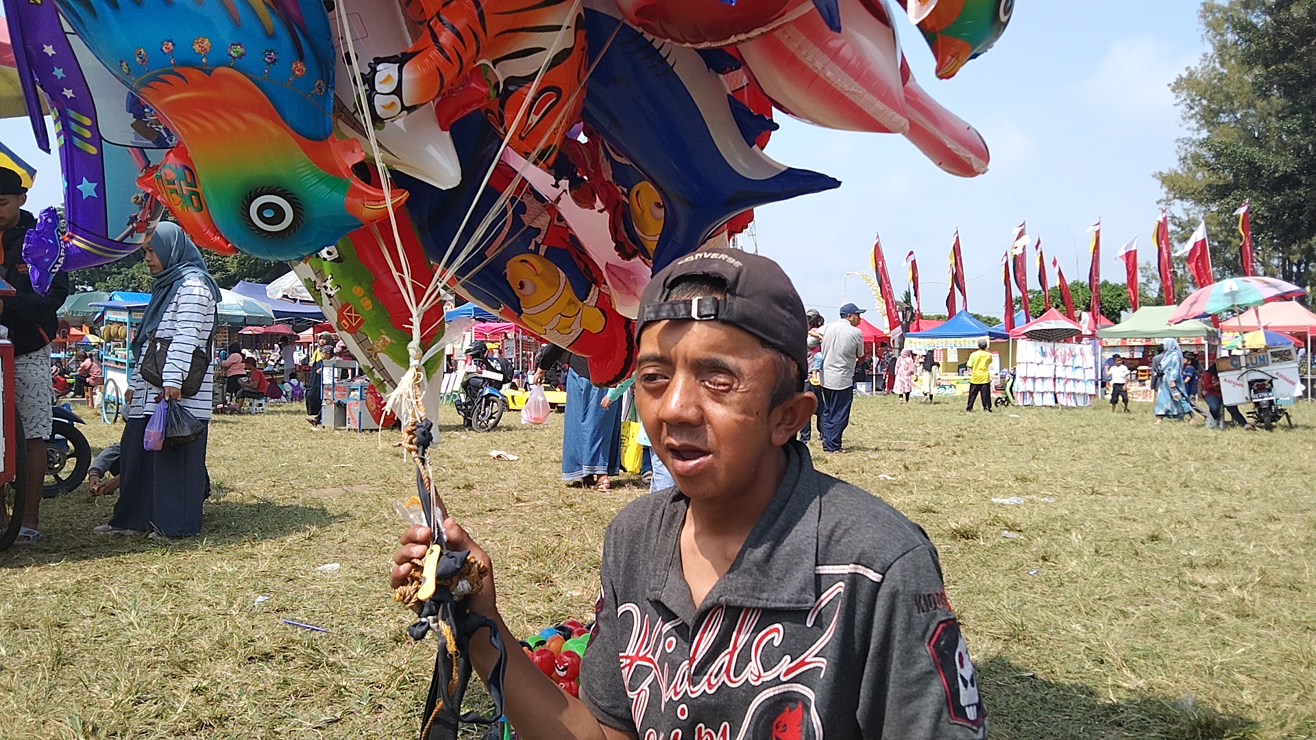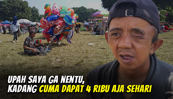 “Saya ada tumor di kepala yang menjalar sampai mata. Nah mata saya dioperasi, bekasnya ini suka bikin takut anak-anak atau jijik saat melihat saya jadi mereka ga mau beli, padahal saya cuma jualan balon bukan nakut-nakutin mereka,” lirihnya.