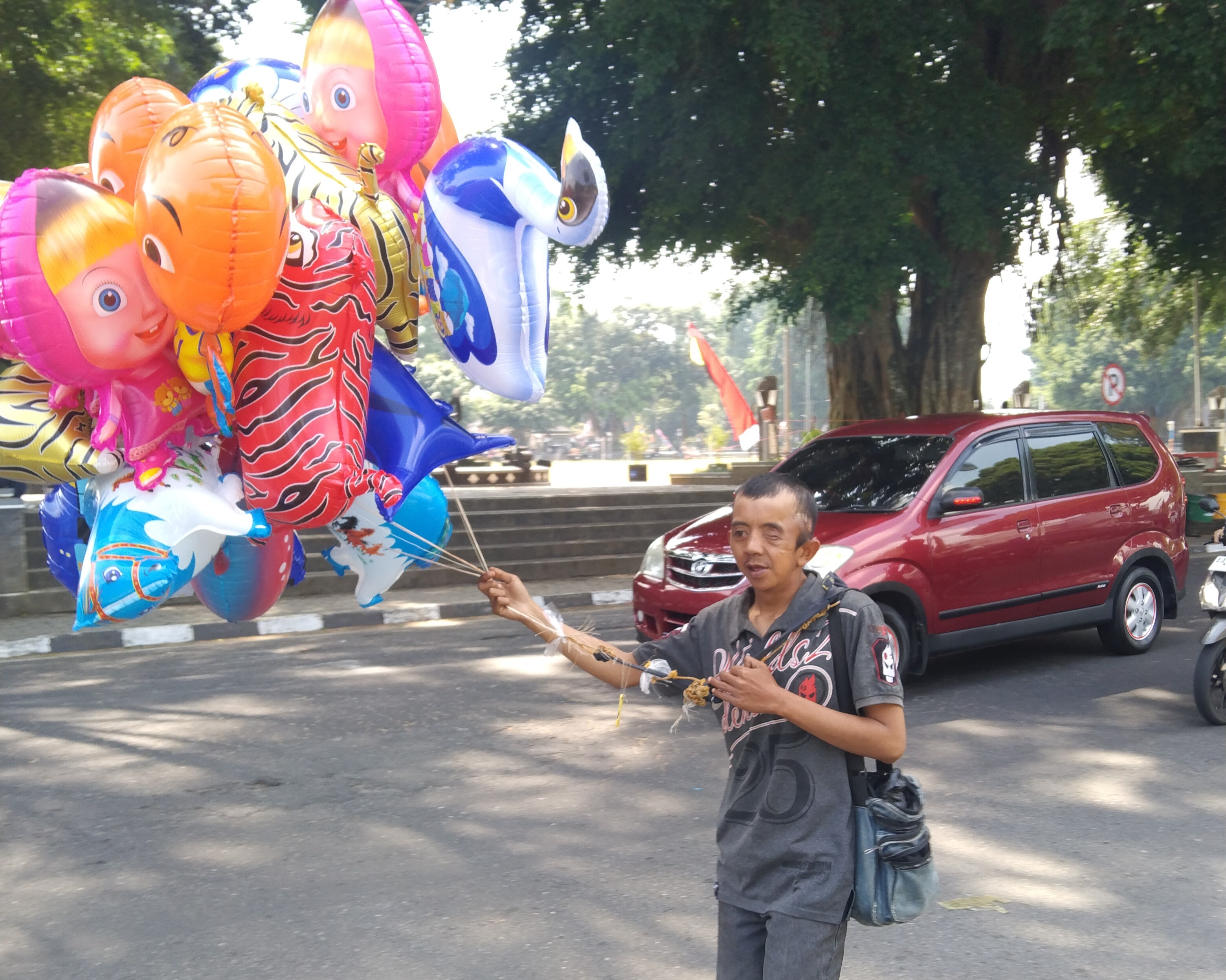 Dari 1 buah balon yang terjual Pak Arwan mendapat upah Rp 1.000. Setiap hari penghasilannya ga nentu, kadang cuma 4 ribu atau ga ada pembeli sama sekali. Pak Arwan cerita kadan suka bertemu dengan anak yang merengek minta balon tapi orang tuanya ga ngasih karena ga ada uang, jadi Pak Arwan kasih anak itu secara gratis karena kasihan.