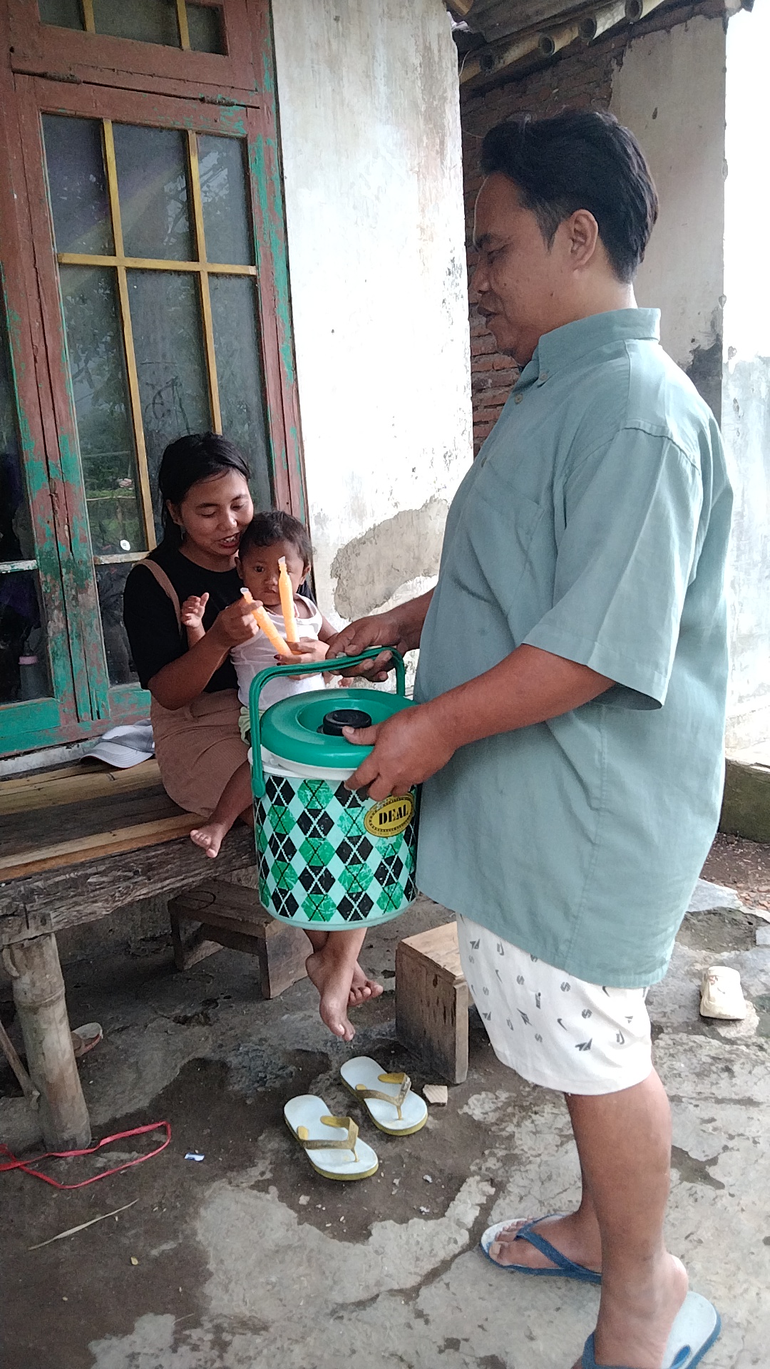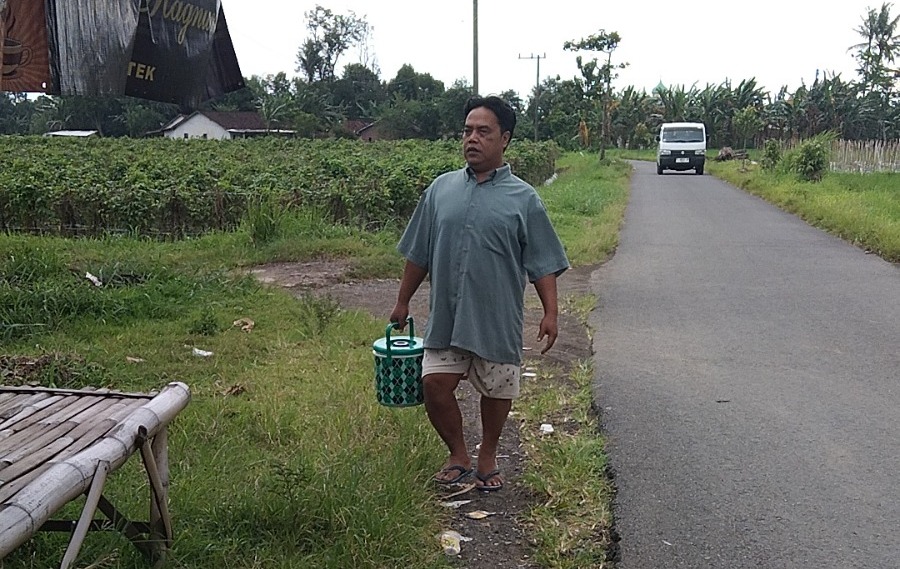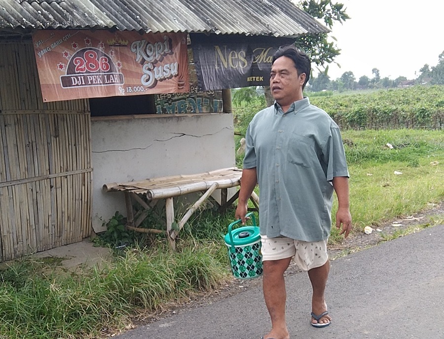 Namun setiap hari, mulai pukul 8 pagi hingga 4 sore, Pak Heri tetap berjalan kaki sekitar 5 kilometer berkeliling kampung untuk berjualan es lilin milik orang lain.