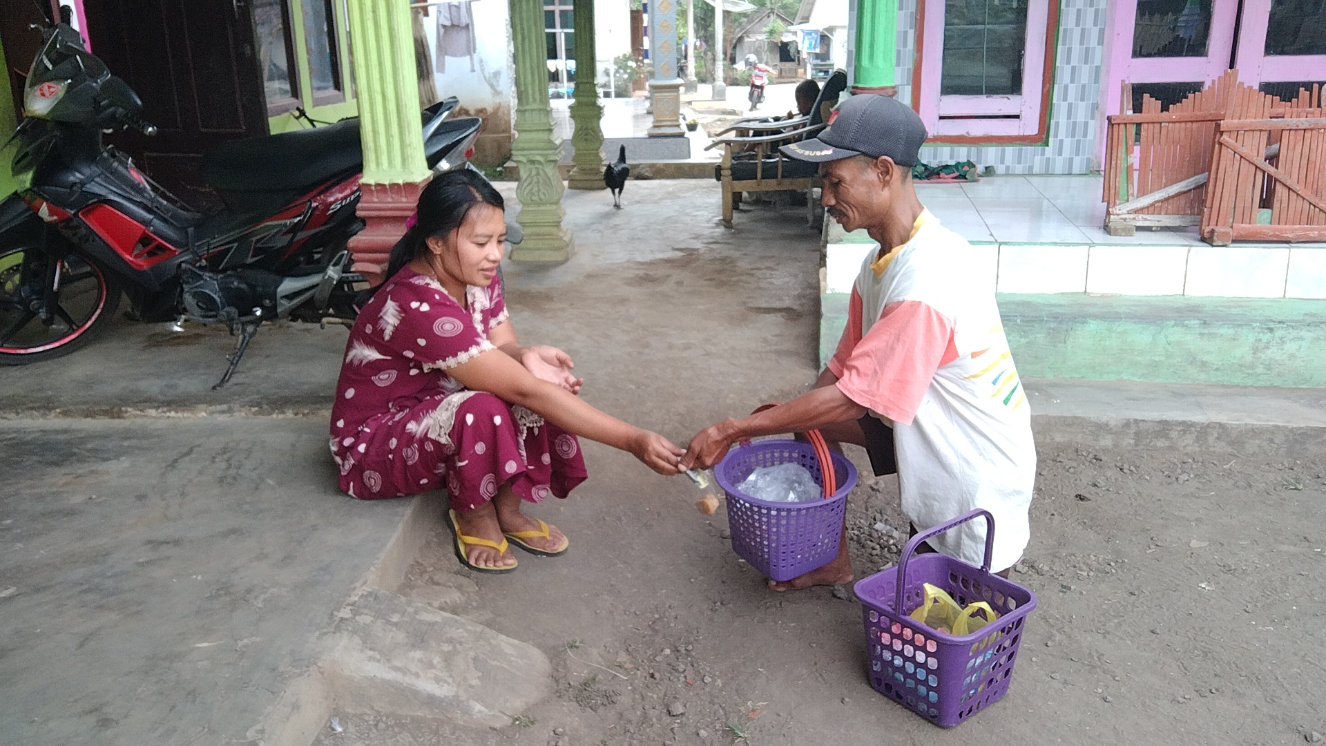 Keliling desa sekitar 7 km berjualan. Dalam sehari pak Miswar membawa 60 pentol. Upah yang didapat nya hanya 10 ribu itupun jika laku semua.