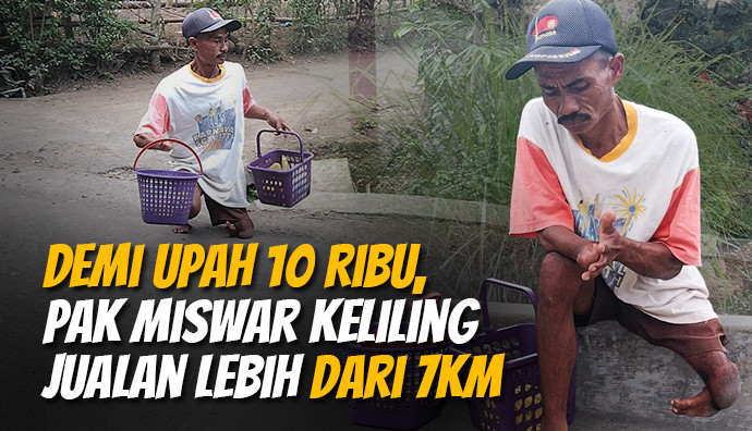 Ga mudah untuk Pak Miswar (47) mencari nafkah di tengah keterbatasan fisik yang dimilikinya, tangan sebelah kanannya tak memiliki jari dan kondisi kaki bagian kirinya pendek dan bengkok sejak lahir.