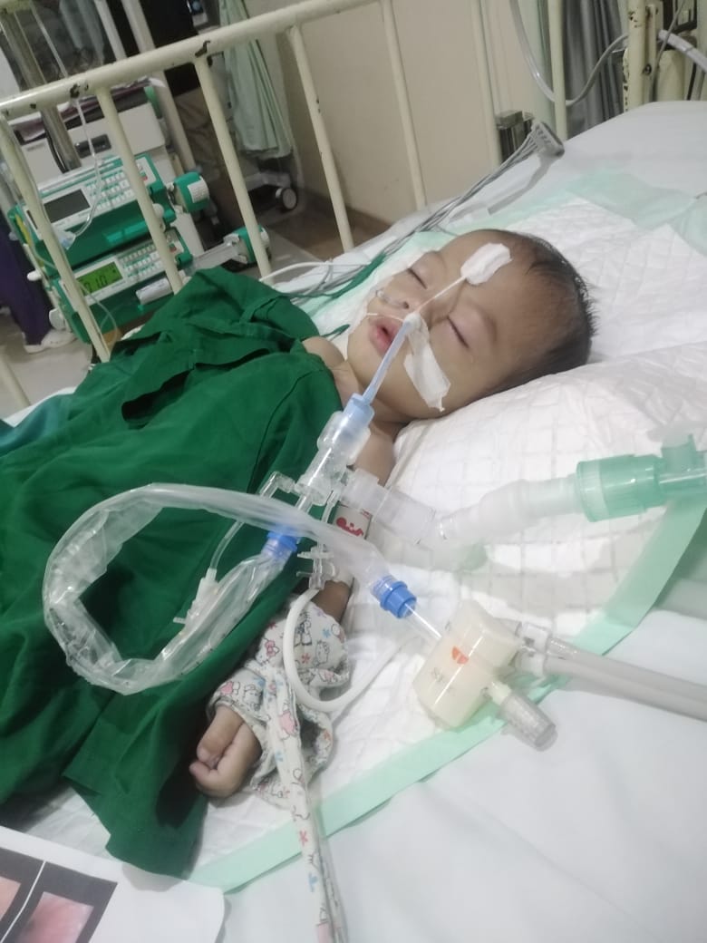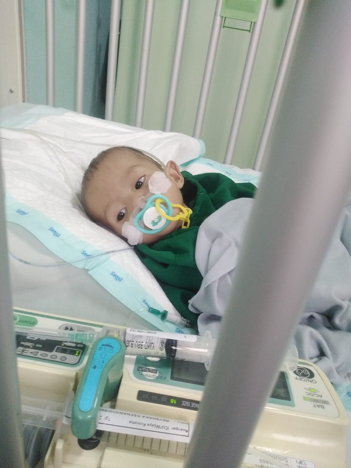 Karena sejak usianya 4 bulan ia didiagnosis Jantung Bocor serta Pneumonia Langka. Dan kini masih dirawat di ruang ICU.