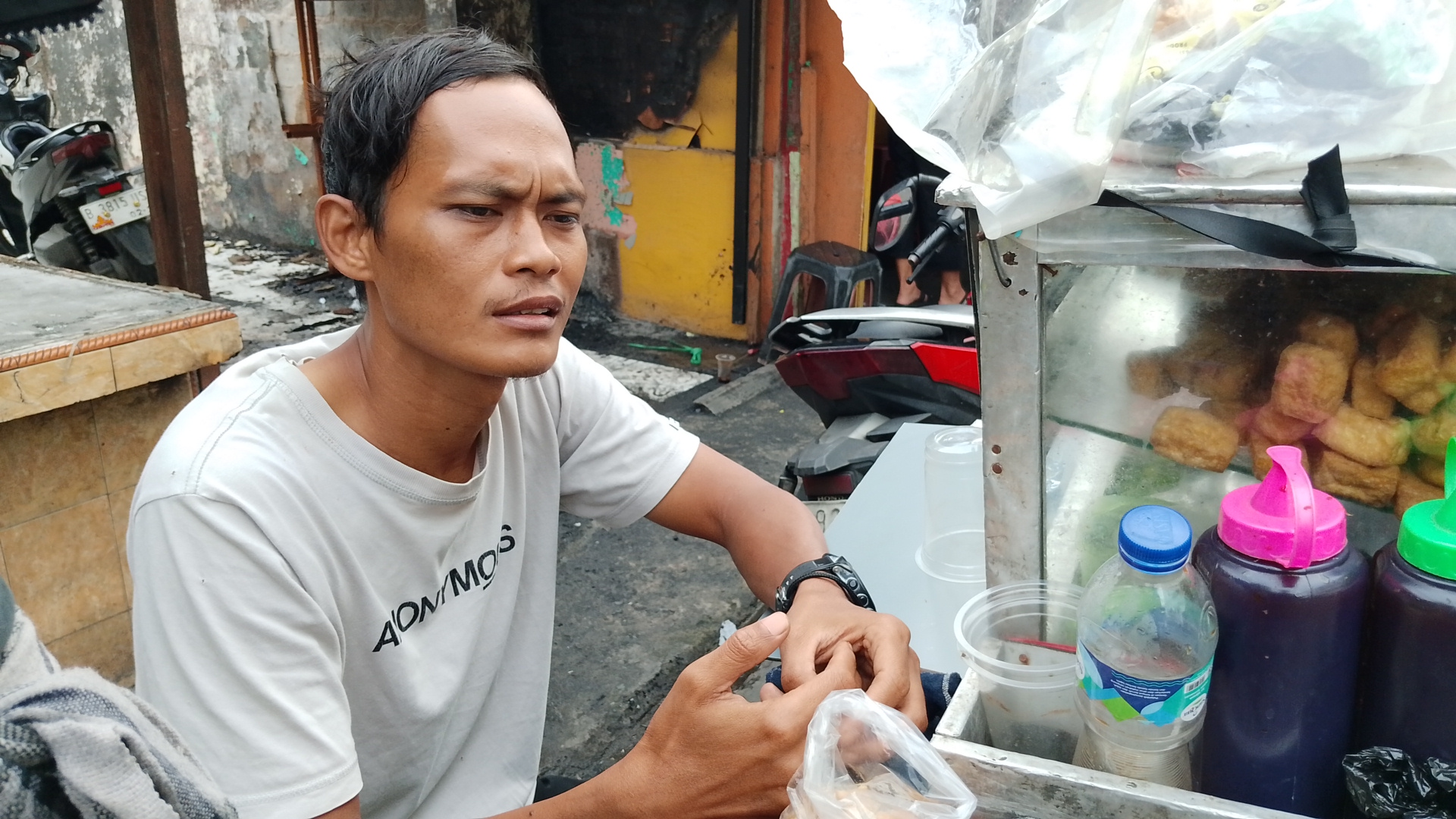 Ayahnya terus berusaha berjualan dari pagi hingga malam, seringnya hanya membawa pulang Rp.5000 - Rp.30.000/hari.