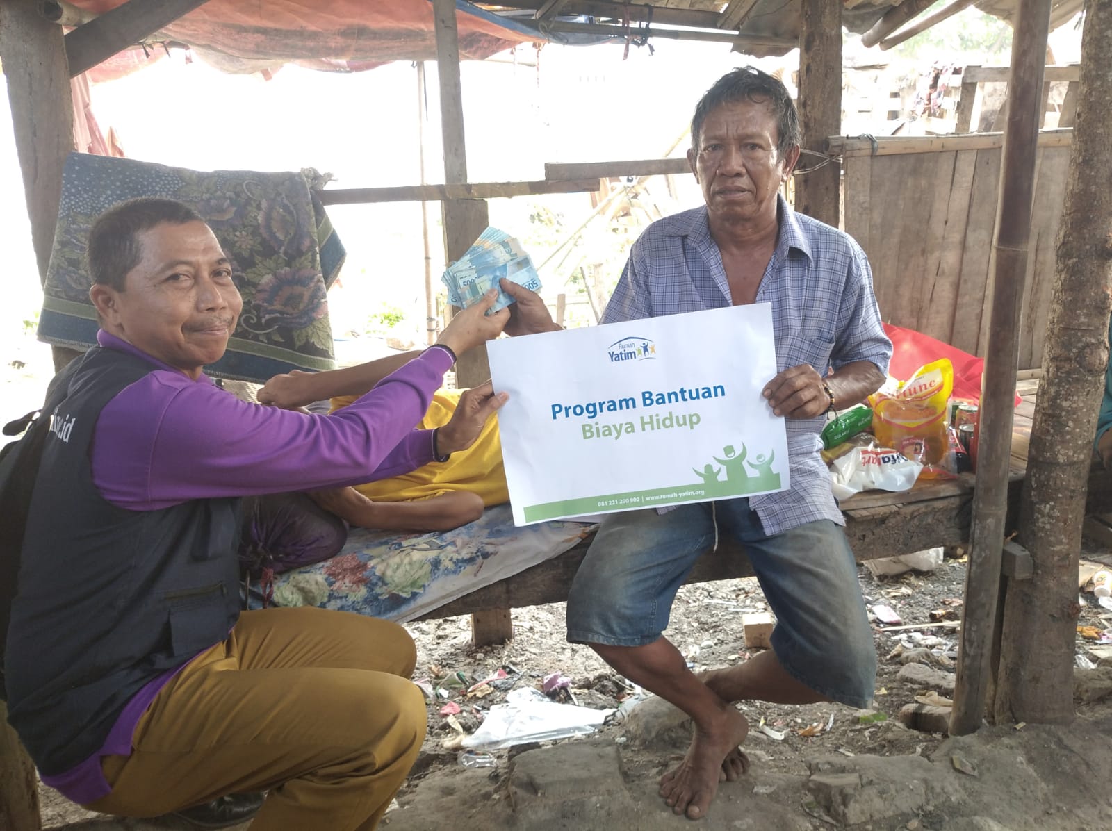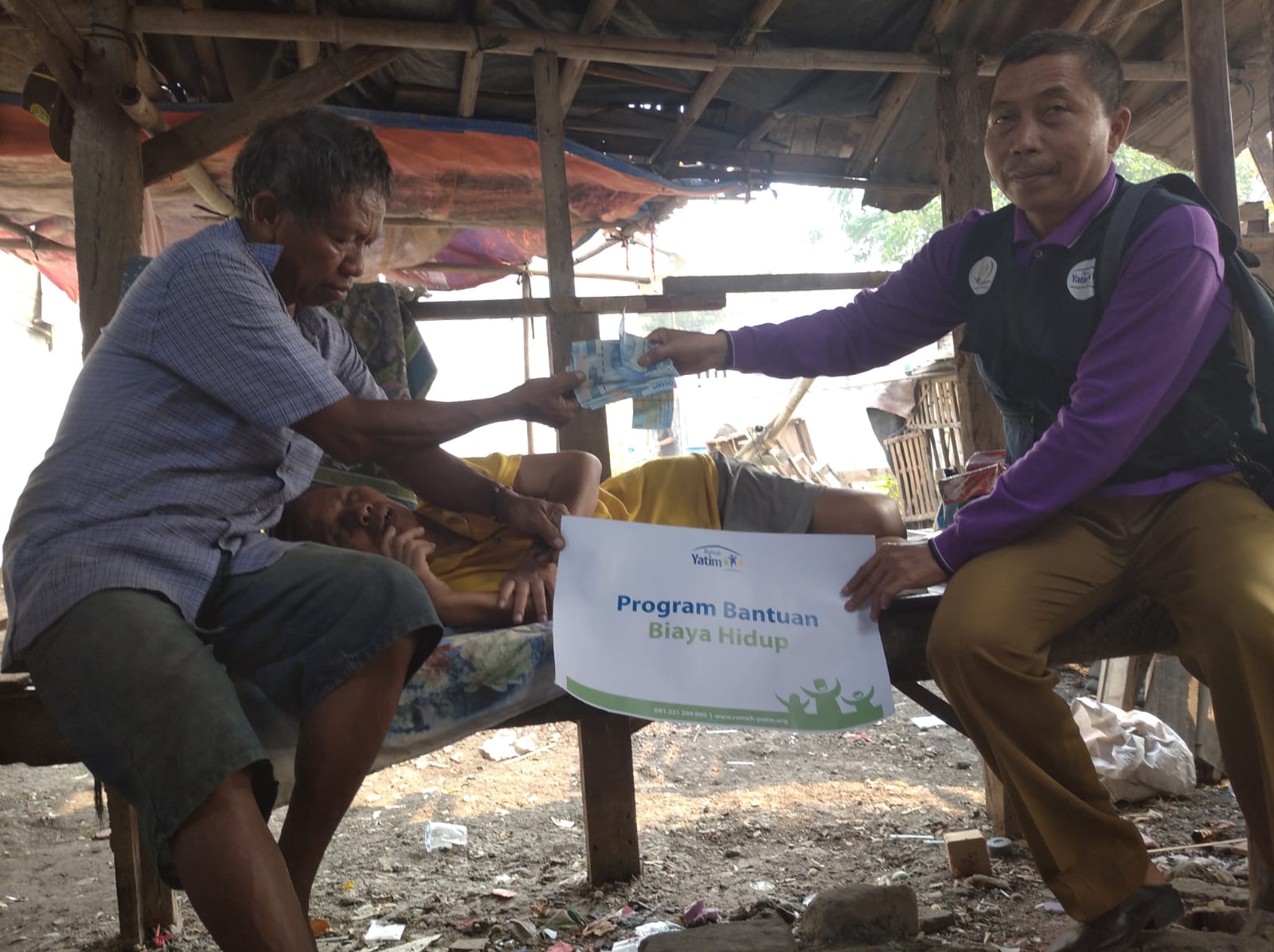 Bantuan yang diberikan adalah bantuan biaya hidup berupa uang tunai yang akan digunakan untuk membeli kebutuhan sehari hari Pak Omat.