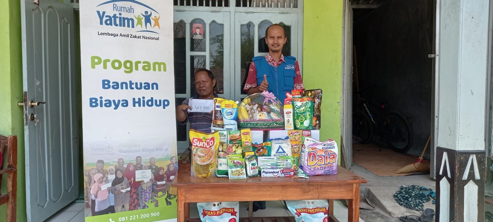 Bantuan yang diberikan adalah bantuan biaya hidup berupa sembako seperti minyak, beras, terigu dan lainnya, tak hanya itu, kami juga memberikan bantuan uang tunai sebesar Rp.3.367.900,- guna membantu kebutuhan sehari hari lainnya.