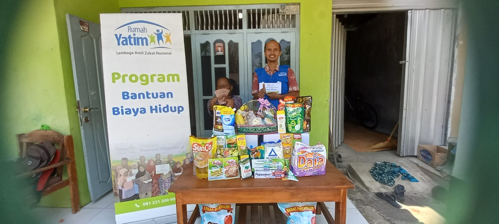 Bantuan yang diberikan berupa sembako seperti beras, terigu, minyak dan lainya, tak hanya itu kami juga memberi bantuan uang tunai sebesar Rp. 8.830.000,- yang akan digunakan untuk kebutuhan sehari-hari lainya.