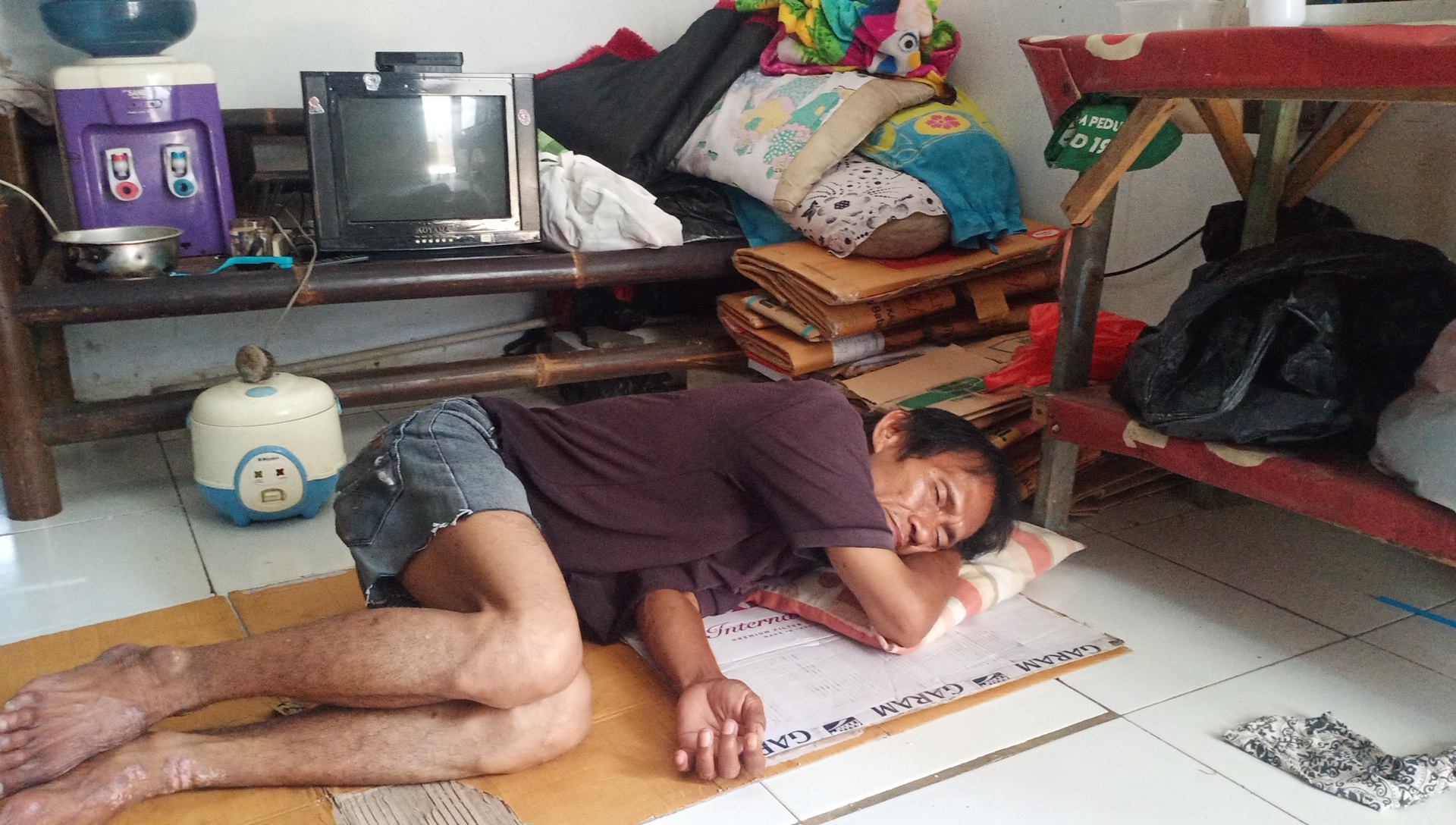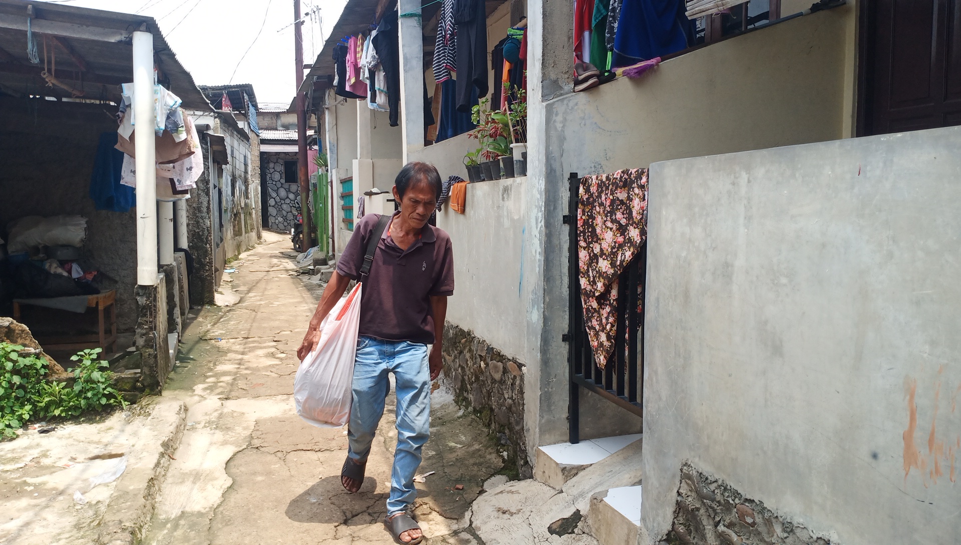 Istri dan anaknya pergi 5 tahun yang lalu meninggalkan dirinya karena faktor ekonomi. Kini ia mengontrak di kontrakan sederhana yang sudah menunggak 4 bulan lamanya.