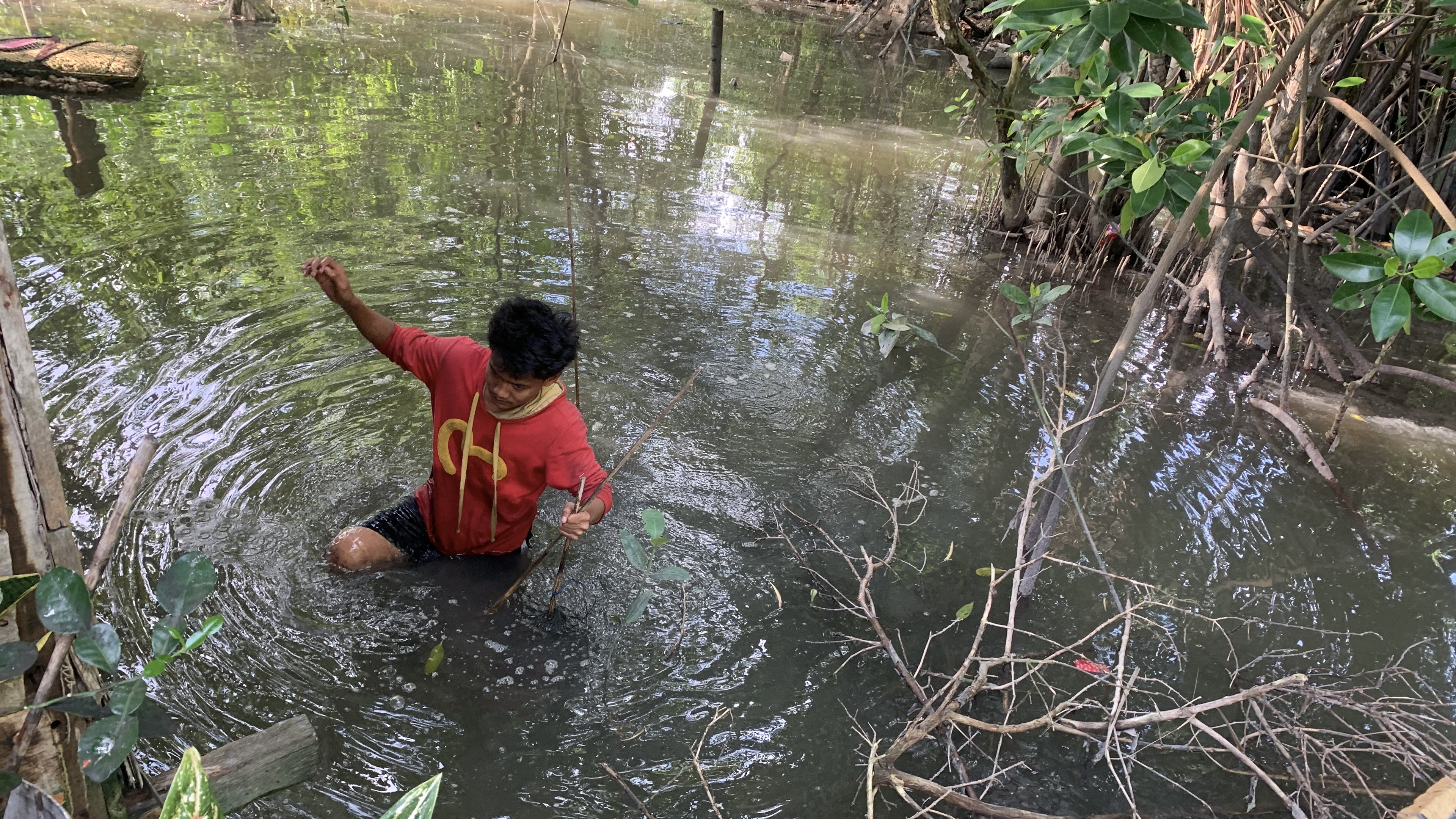 Setiap pagi, dari pukul 6 hingga 12 siang, sebelum berangkat sekolah, Bayu masuk ke hutan bakau untuk memasang bubu kepiting. Tak jarang, ia pulang hanya membawa 2–4 ekor kepiting. Bahkan sering kali, pulang dengan tangan kosong. Dari hasil itulah Bayu membeli makanan. Saat air laut pasang dan ia tak bisa bekerja, lapar menjadi teman berhari-hari.