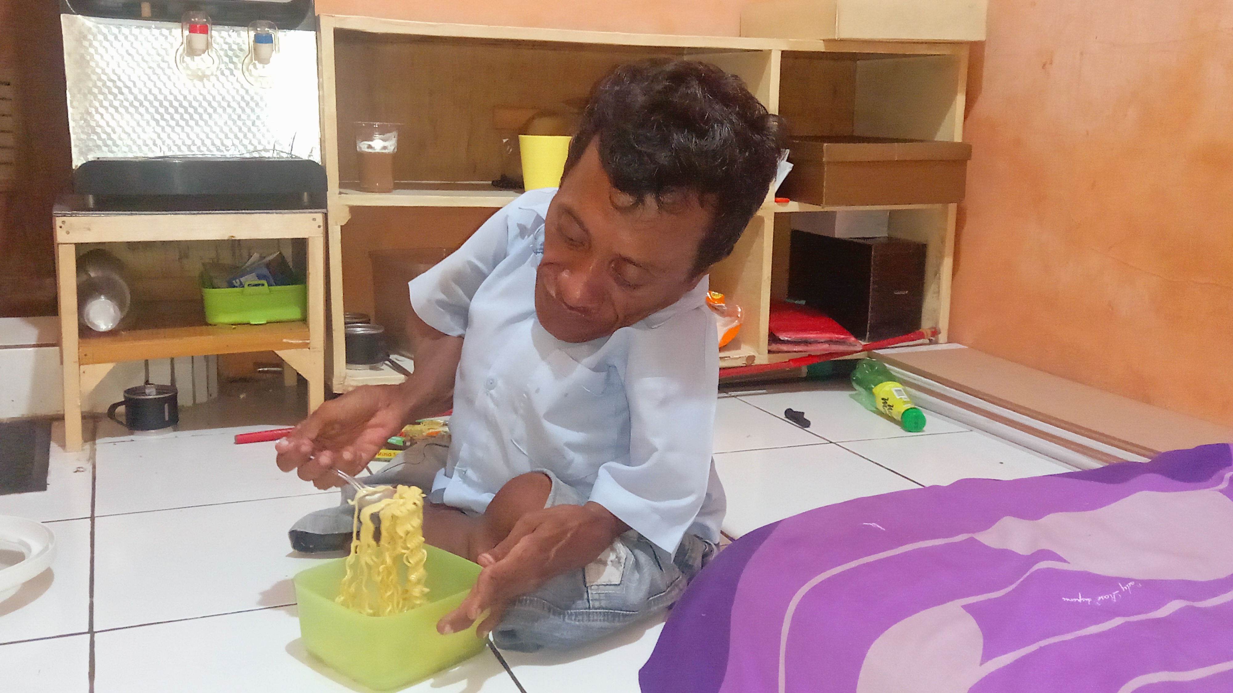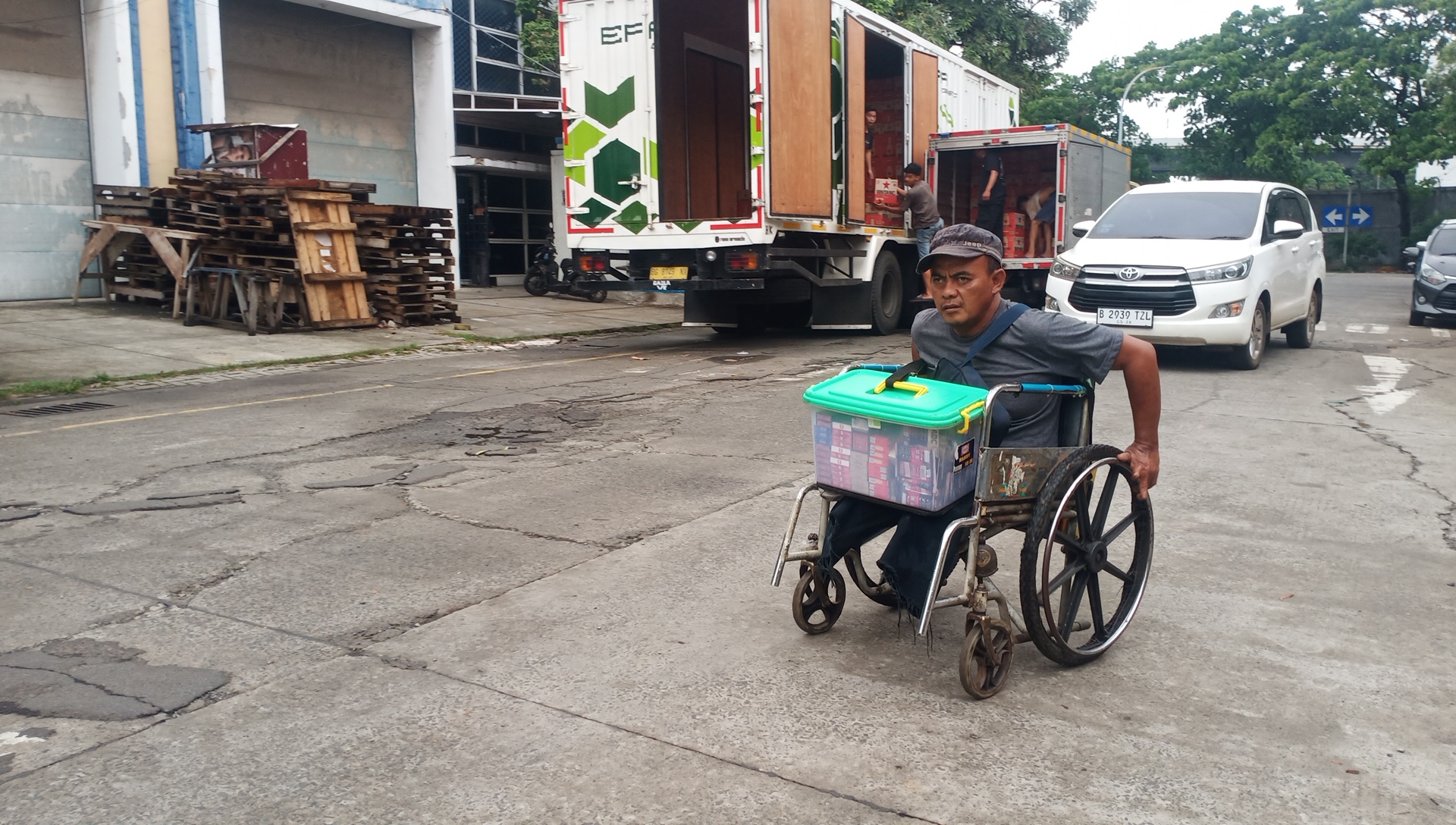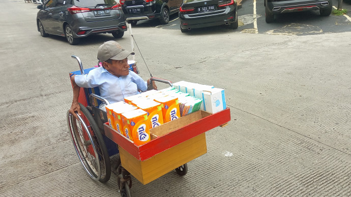 Contohnya Pak Tarsiwan (43) setiap hari ia mencari seribu dua ribu untuk sesuap nasi dengan berjualan tisu. Meskipun harus berjalan menggunakan kursi roda. Ia tak bisa berdiri dan memiliki kondisi tangan yang tak normal.