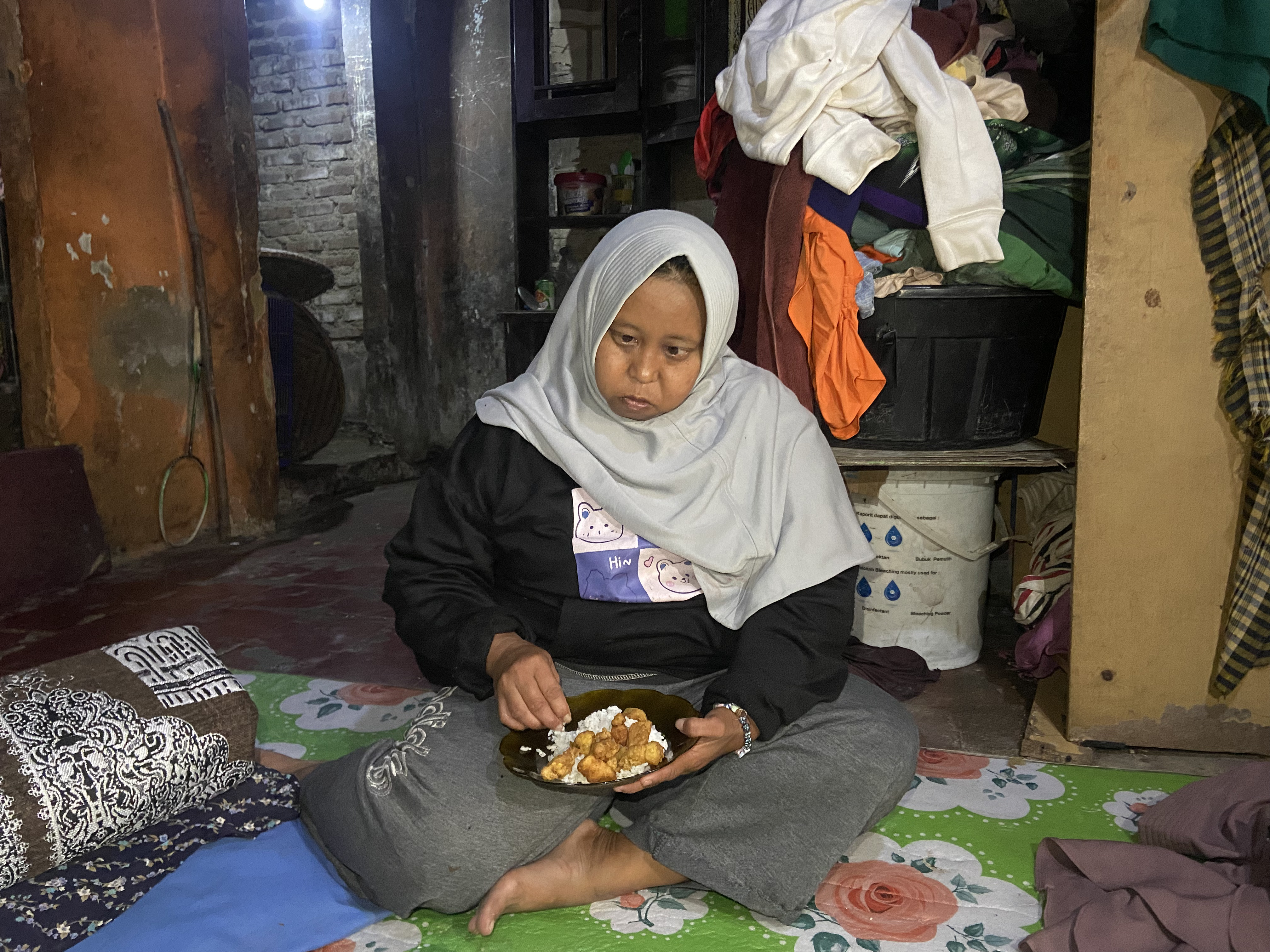 Untuk bertahan hidup, Dewi bekerja sebagai buruh setrika, upahnya tak menentu. Uang itu harus dibagi untuk makan, membeli obat, dan merawat ibu serta adik-adiknya. Tak jarang, saat penghasilan nihil, mereka hanya bisa meneguk air putih untuk menahan lapar, bahkan di bulan Ramadhan.