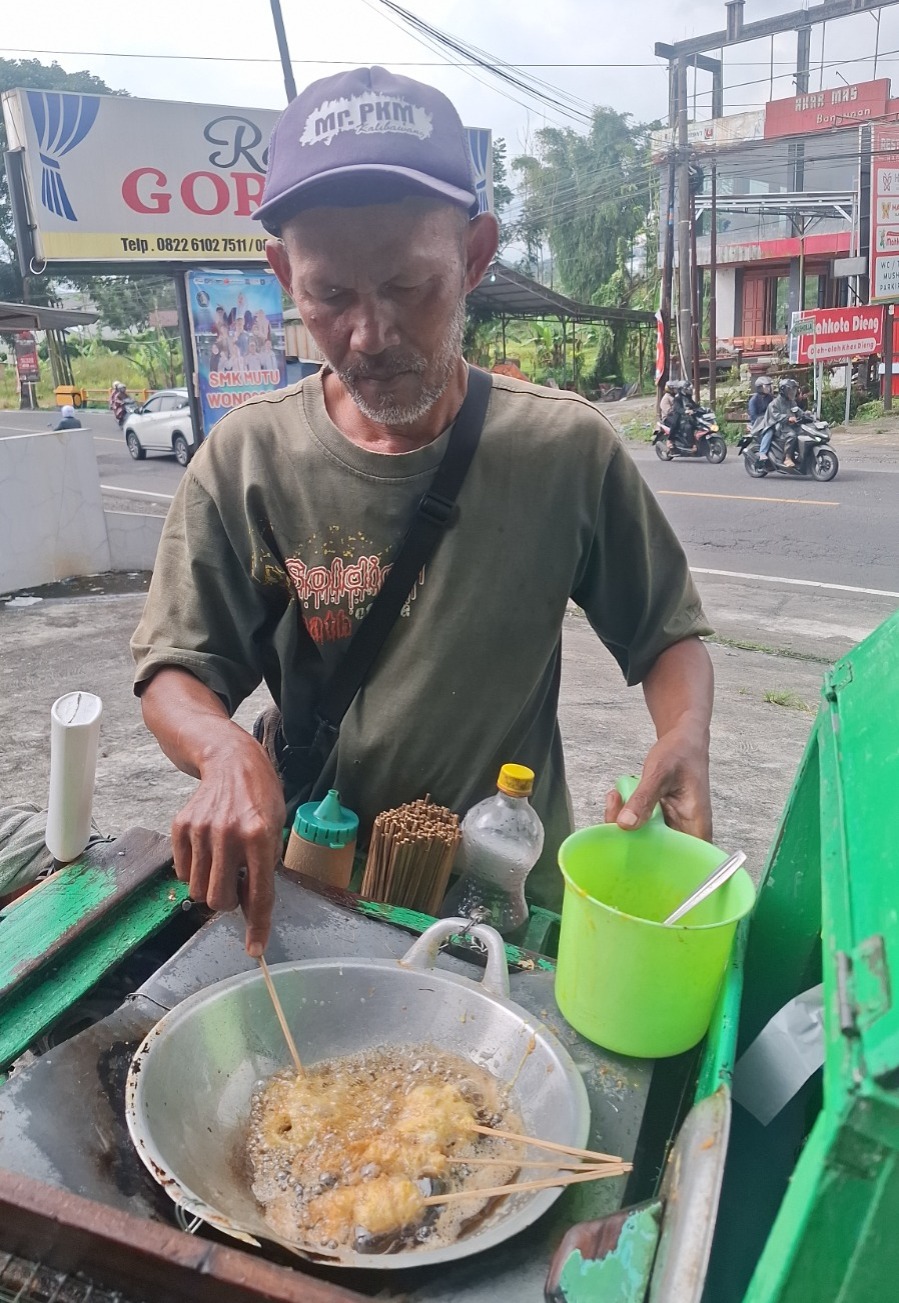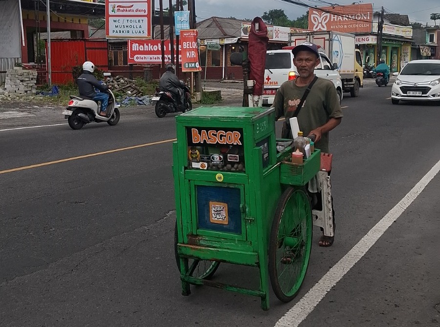 Selama 30 tahun, Pak Bohari (56) tak pernah lelah berjalan menyusuri jalanan demi mencari nafkah. Setiap hari, sejak pukul 07.00 hingga 17.30 WIB, ia berjualan basreng milik orang lain dengan berjalan kaki sejauh ±3 km. Namun perjuangannya tak sebanding dengan hasil yang didapat. Ia hanya menerima upah Rp200 per tusuk, dengan penghasilan harian yang kadang hanya Rp7.000 hingga Rp20.000.