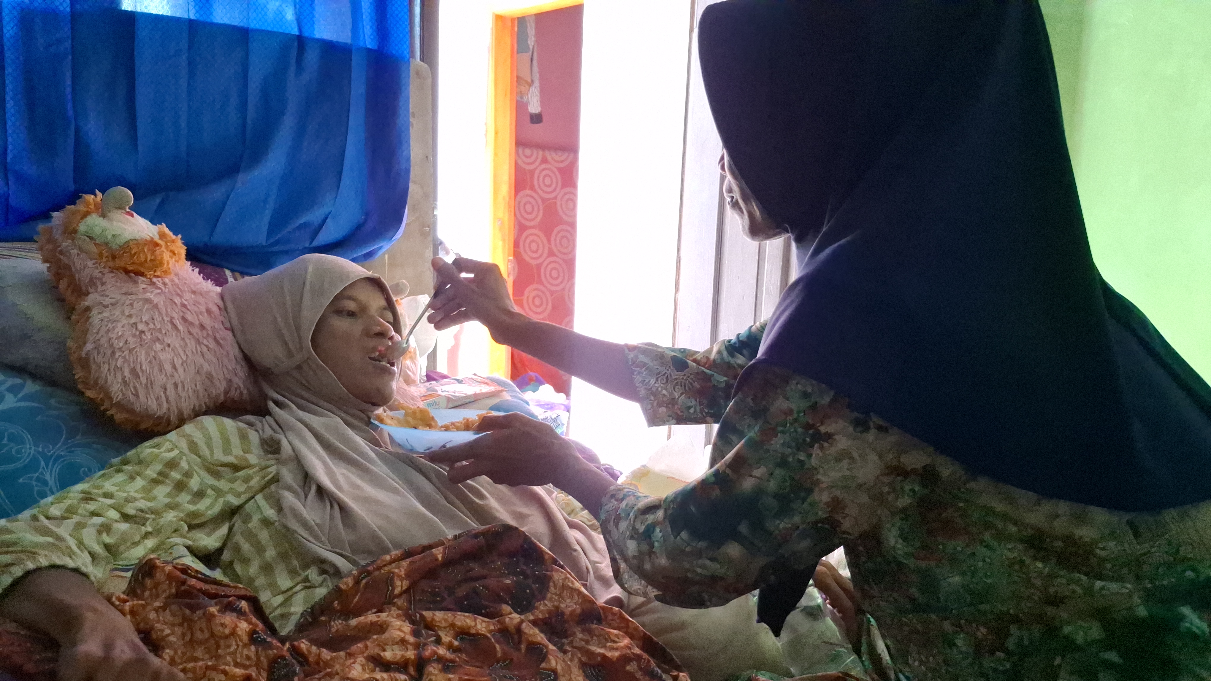 Sejak saat itu, Bu Samenah ditemani sang Kakak, Bu Midah. Yang setiap merawatnya setiap hari.