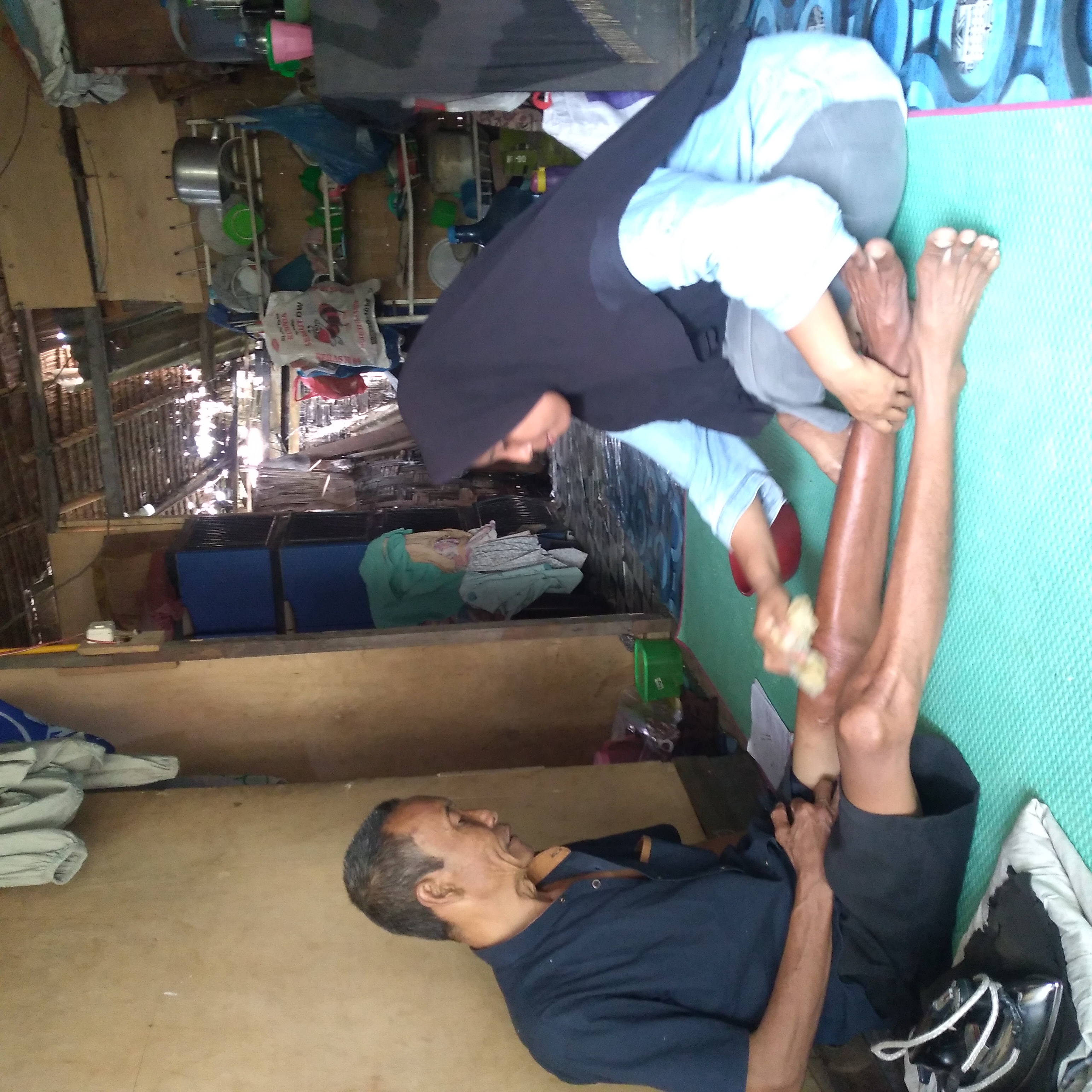 Selain merawat suaminya, ibu juga harus merawat ibunya yang lumpuh. Seringkali ibu sedih saat tak cuaca hujan. Ibu tak punya pendapatan sama sekali.