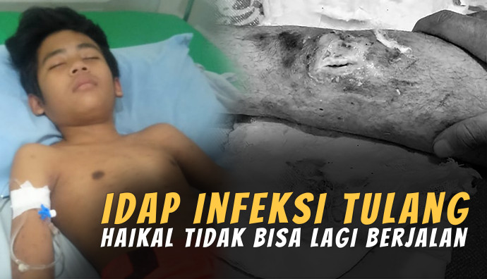 Berawal dari kecelakaan, Kini Haikal Idap Infeksi Tulang. Pasalnya, tulang kakinya retak, dan tulang pinggulnya bergeser sehingga menyebabkan gangguan pada saraf tulang belakangnya.