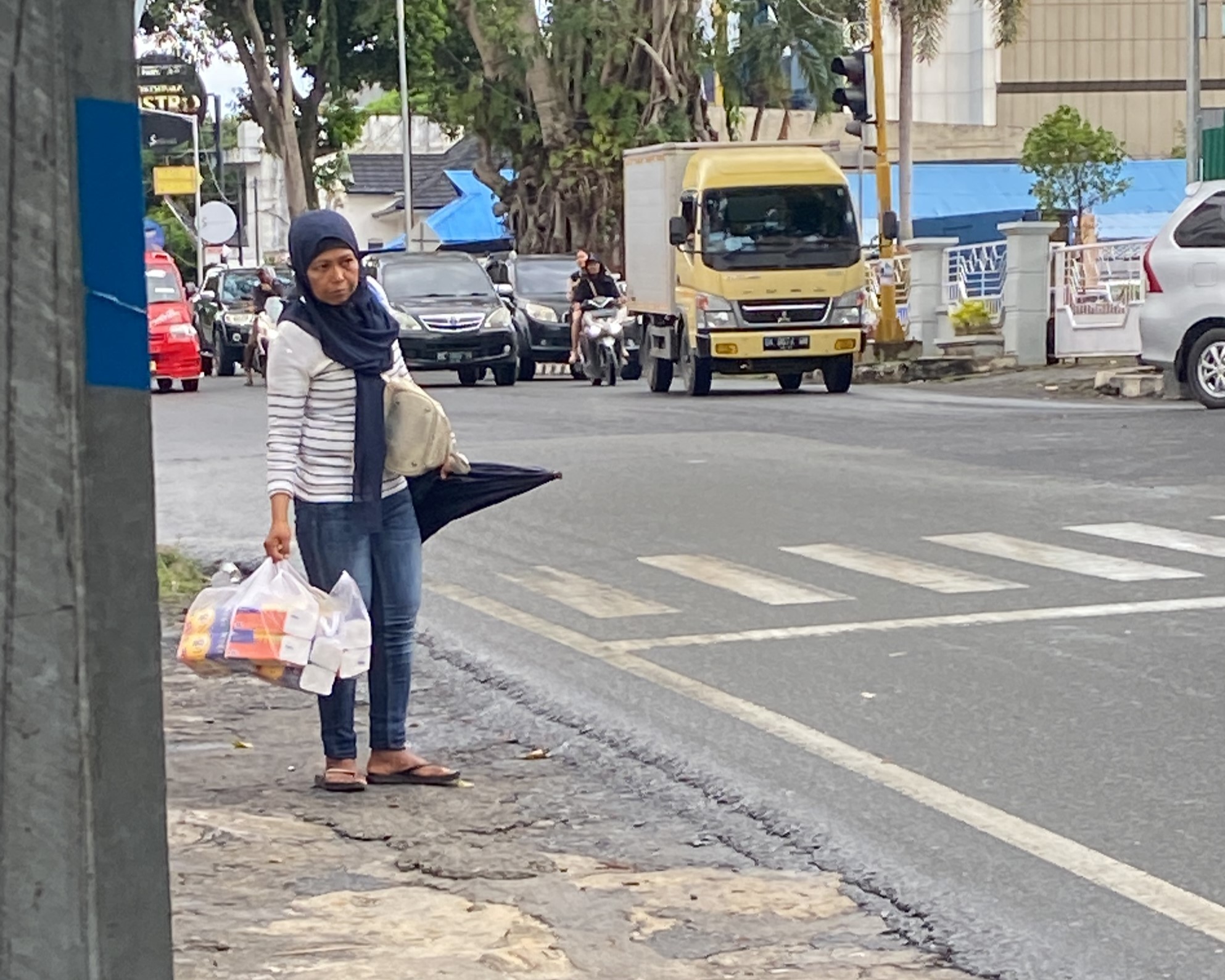 Mulai dari jam 8 pagi sampai jam 6 malam, ia keliling berjualan.