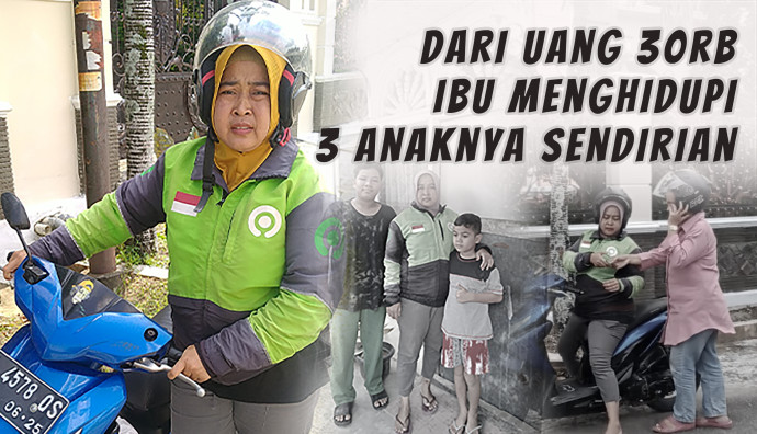 Upah hasil ojek ibu ngga pasti, paling banyak sehari cuma dapat 30rb. Uang itu dipakai untuk beli makan, bertahan hidup juga membayar ke 3 anaknya sekolah.