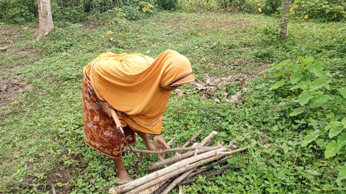 Untuk bertahan hidup, setiap hari Ibu Saodah berjalan perlahan menuju pinggir hutan dekat rumahnya. Dengan tubuh yang gemetar dan tenaga yang kian menipis, ia mengumpulkan kayu bakar sedikit demi sedikit. Kayu itulah yang kemudian ia jual kepada tetangga.