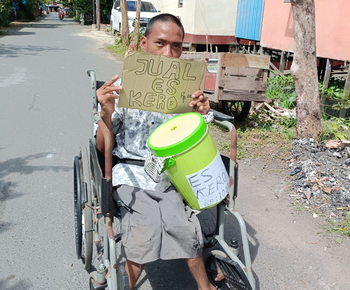 Dengan kursi roda ini lah Ari berkeliling menjual es kero buatan nya sendiri.Bermodalkan plastik, gula dan perasa ia membuat es dengan menyimpan di kulkas milik orang lain. Dari hasil jualan itulah Ari bertahan hidup— dan menjalani puasa Ramadhan.
