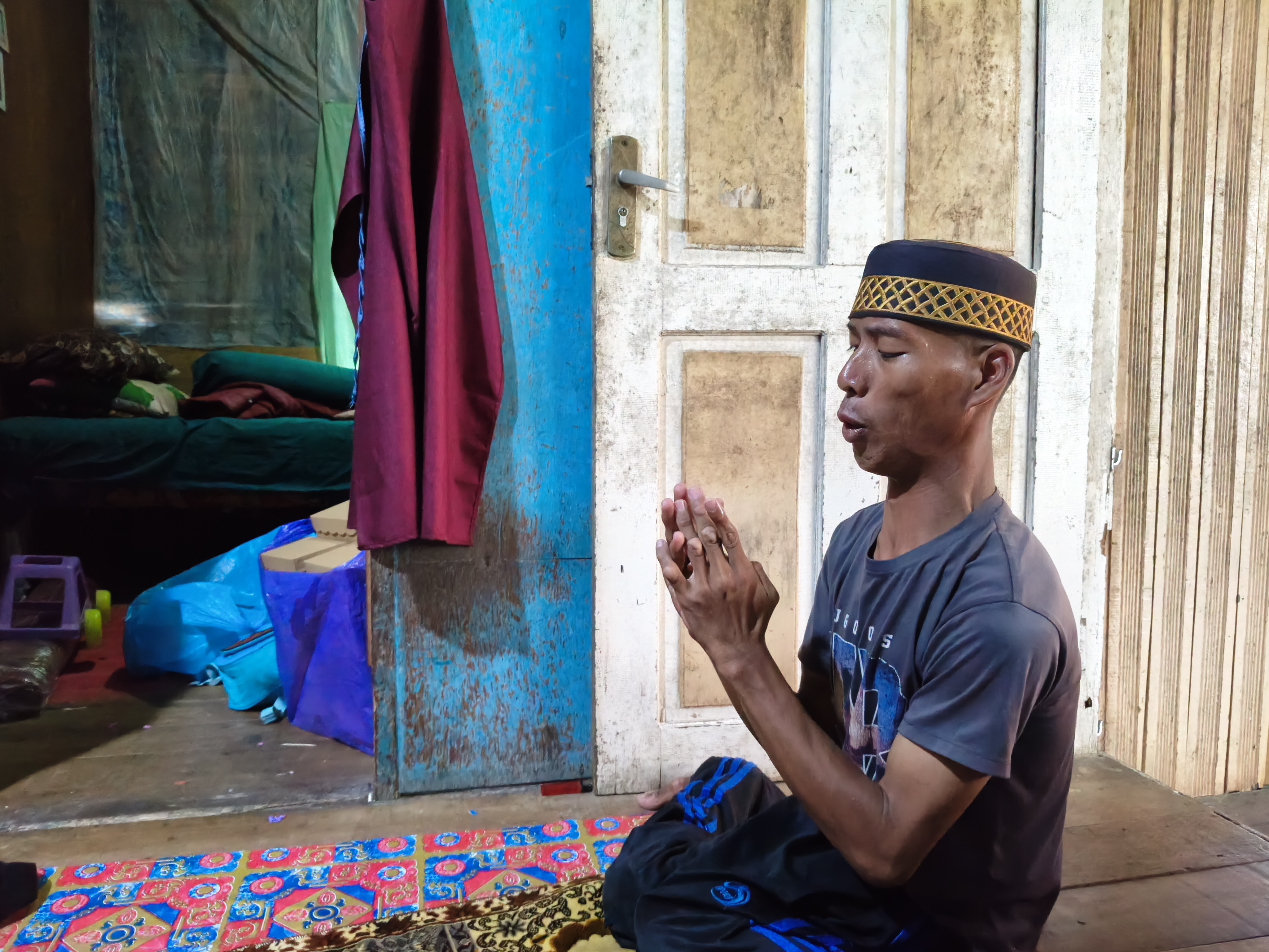 Ia tak punya tempat tinggal tetap kadang sering tidur di pinggir jalan, mushola atau menumpang di rumah orang-orang yang berbaik hati.