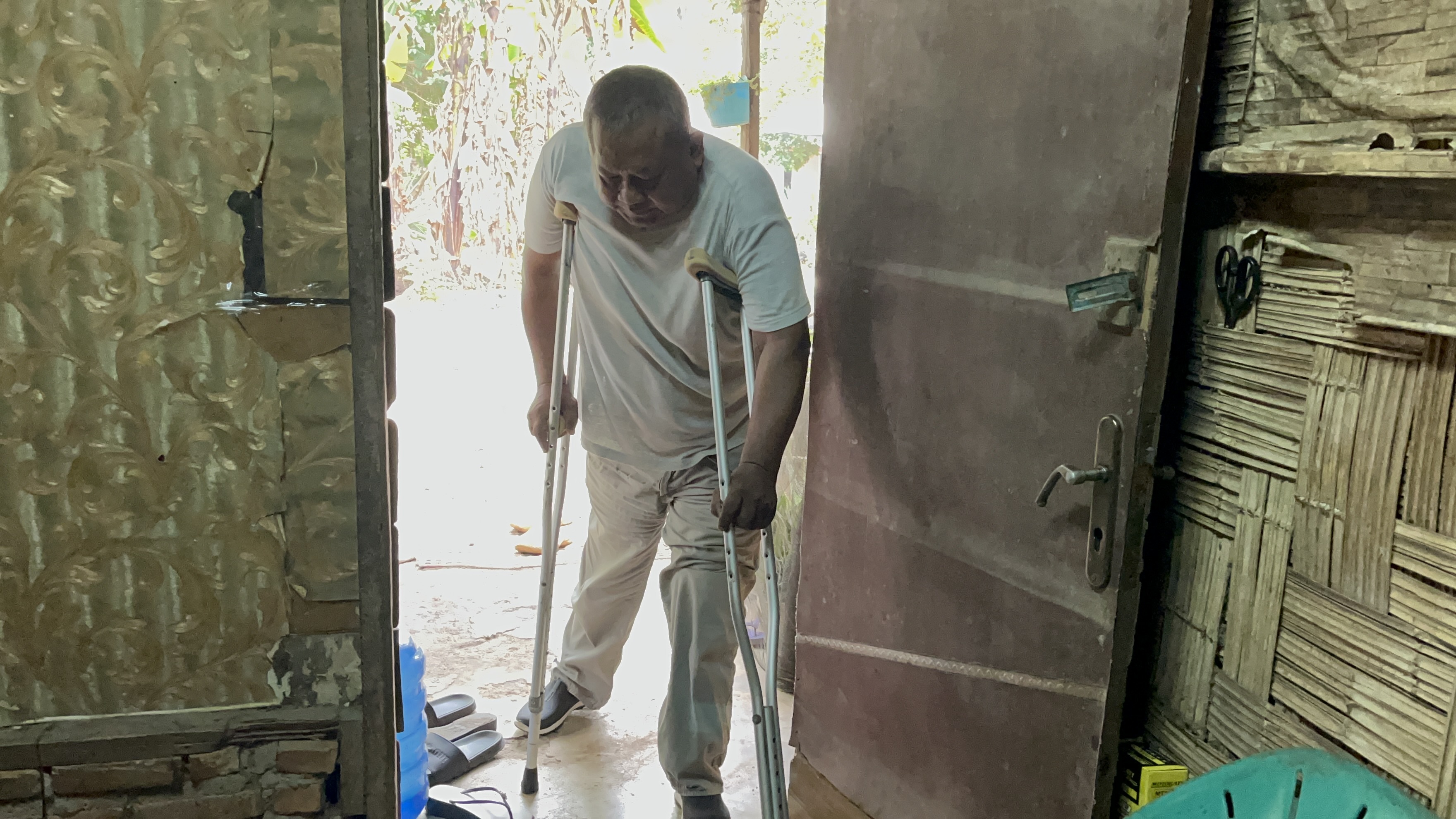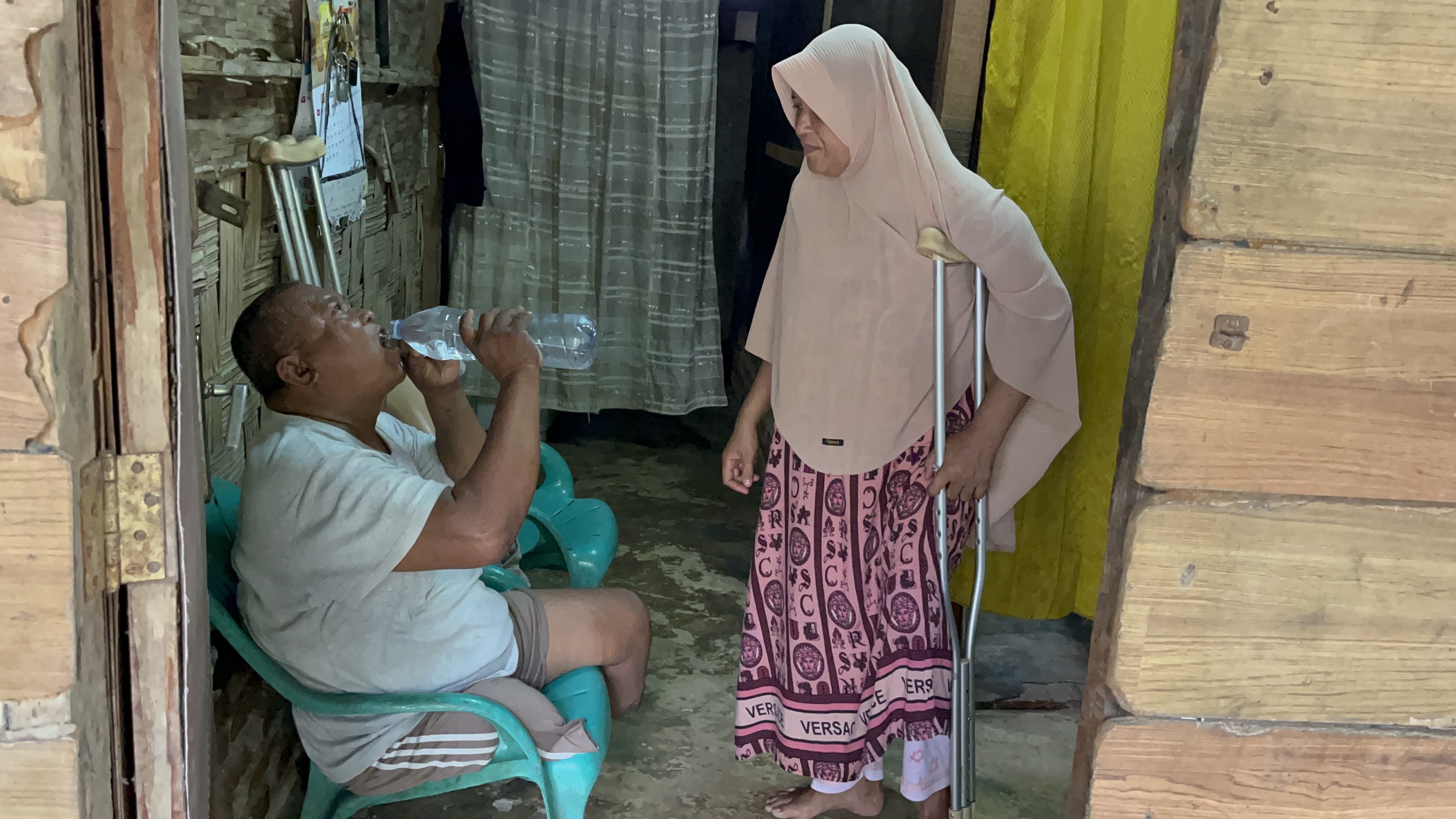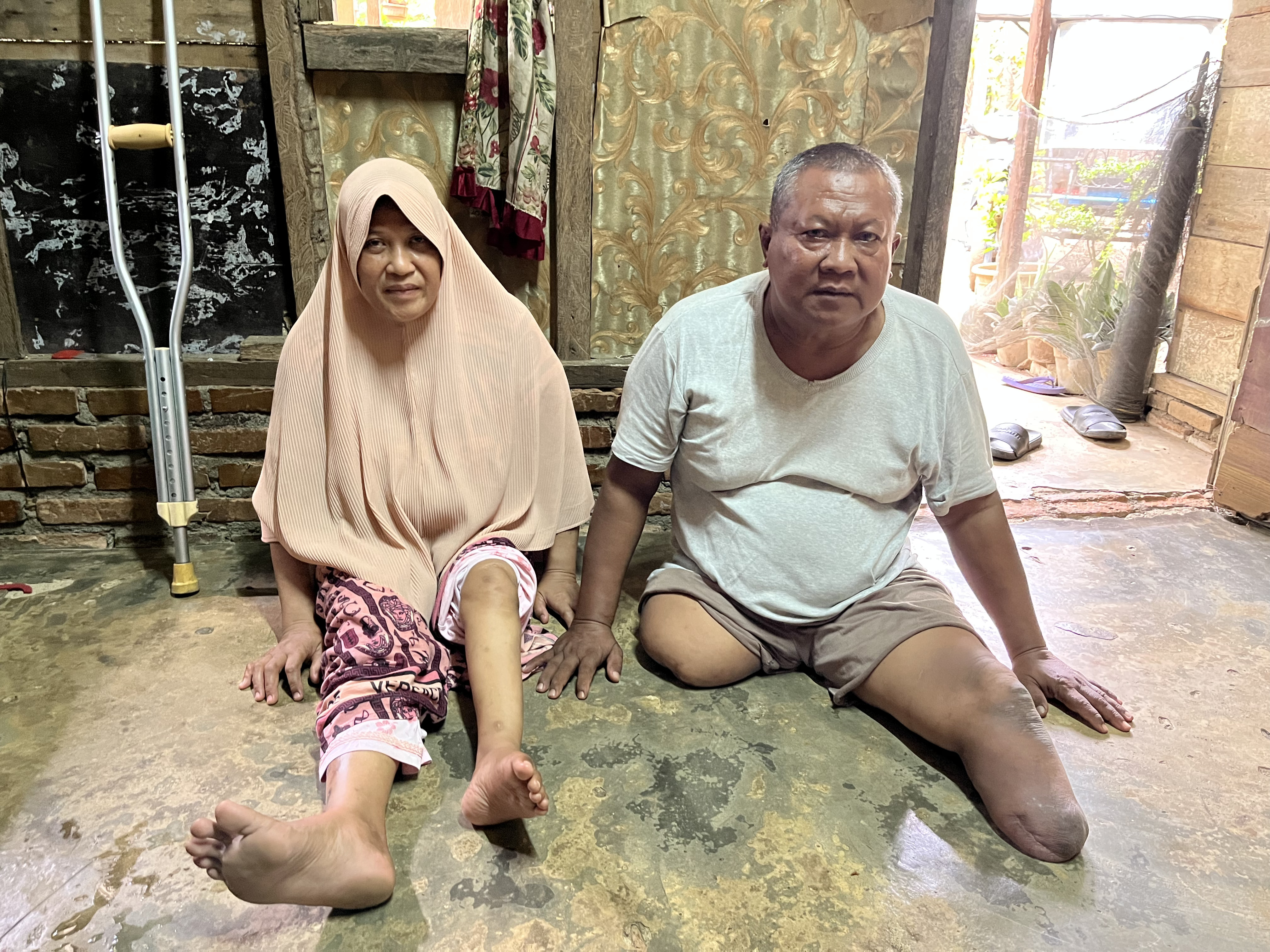 Istri Pak Suharyadi juga tidak bisa berjalan, kakinya tidak bisa digunakan. Hanya bisa mengesot setiap hari di rumahnya.