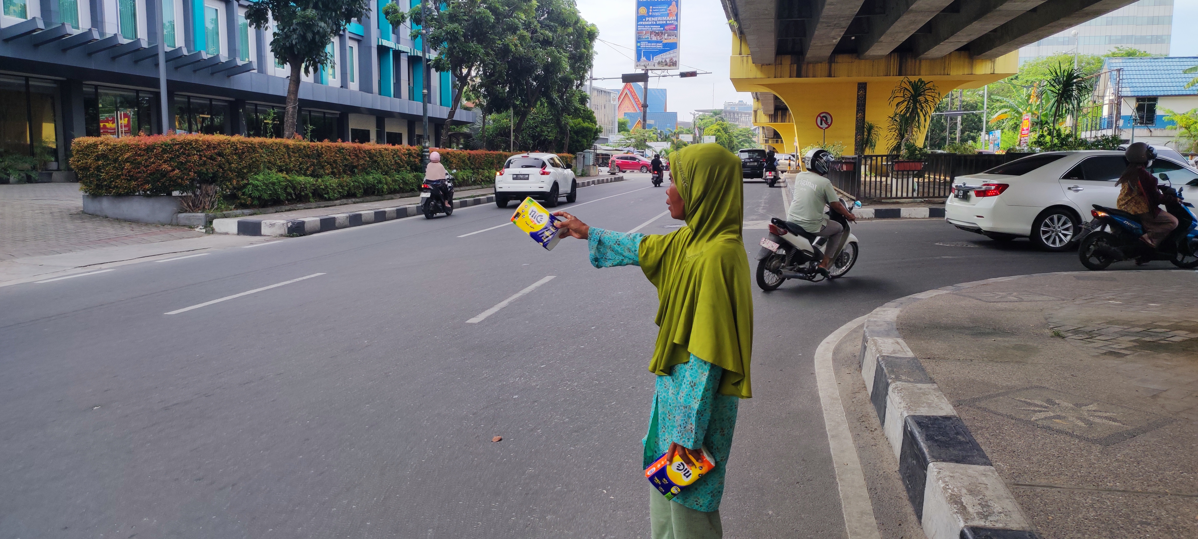 Demi bertahan, nenek berjualan tisu di jalanan, ia tawarkan tisu yang dijualnya ke setiap pengendara. Hanya 8rb yang biasanya didapat, tisu yang dijual nenek beli dari orang untuk dijual lagi.