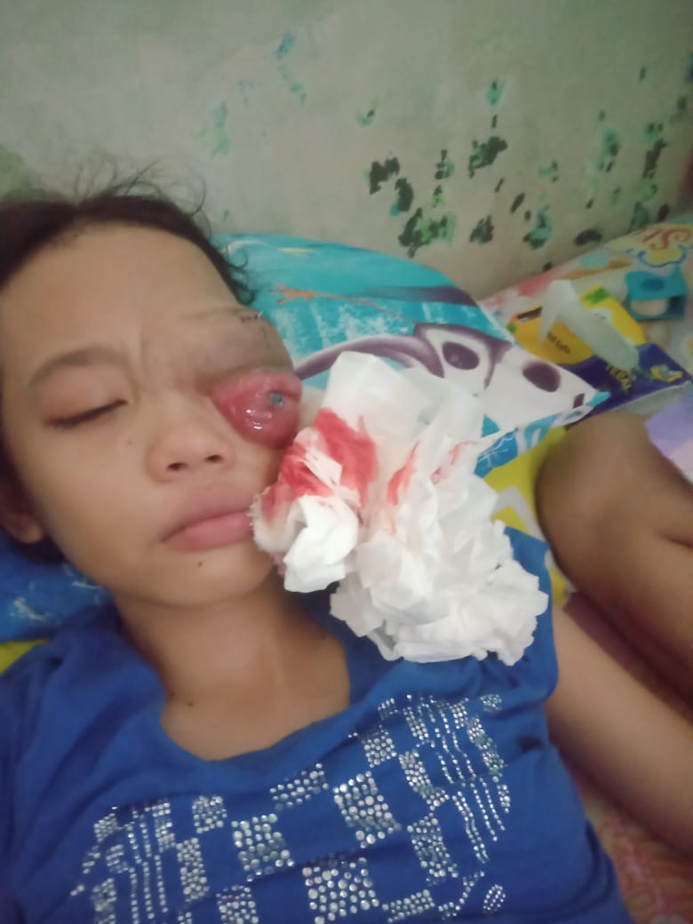 Kondisi yang sama pun dirasakan oleh Shyla. Anak 15 tahun ini harus berjuang dari tumor pada matanya. Kini masa depan Shyla berubah menjadi suram.