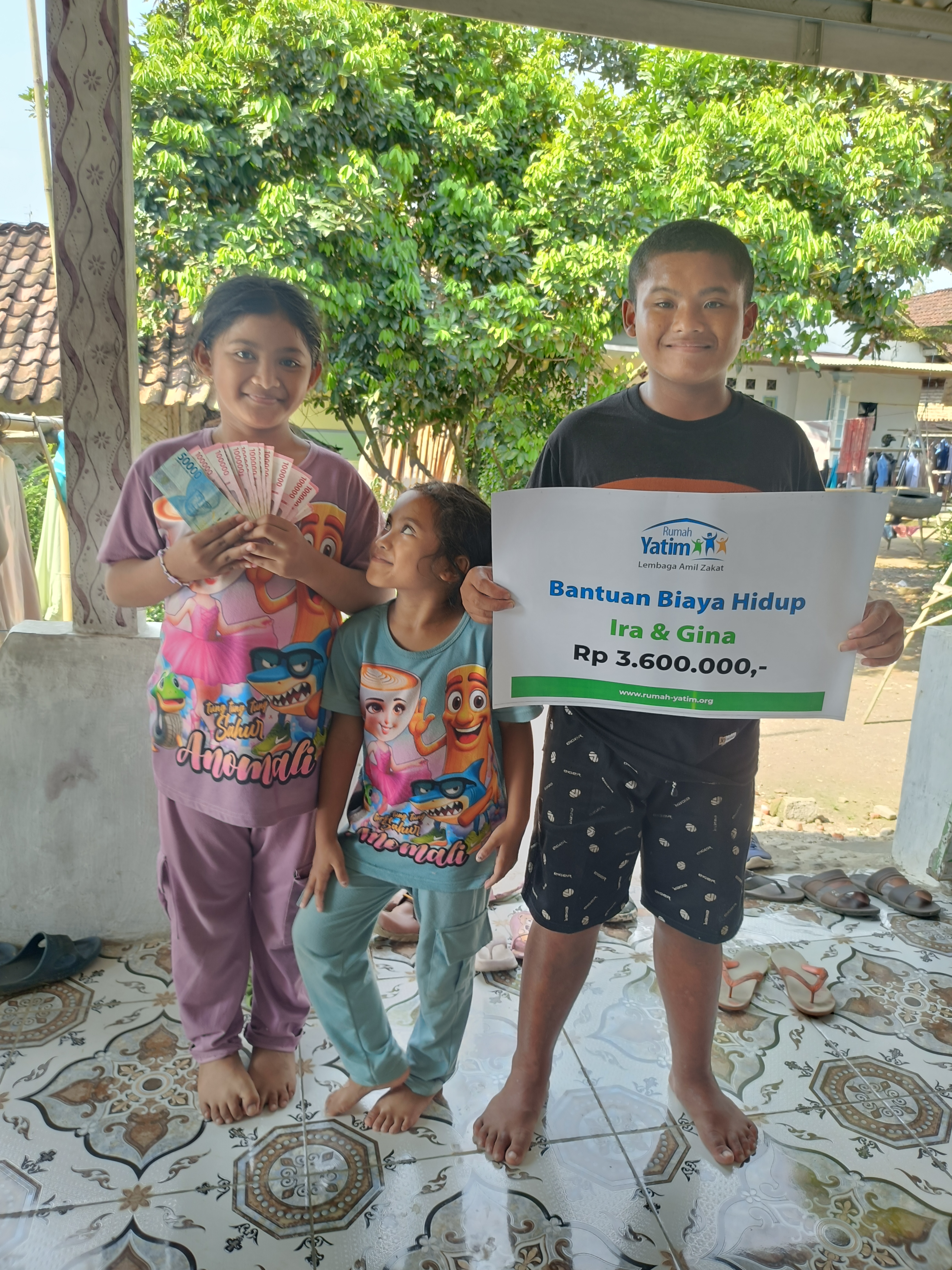 Bantuin 2 yatim tangguh ini yuk, dengan donasimu akan beri Ira dan Ghina kebutuhan bahan pokok, santunan tunai dan kebutuhan lain-lainnya.